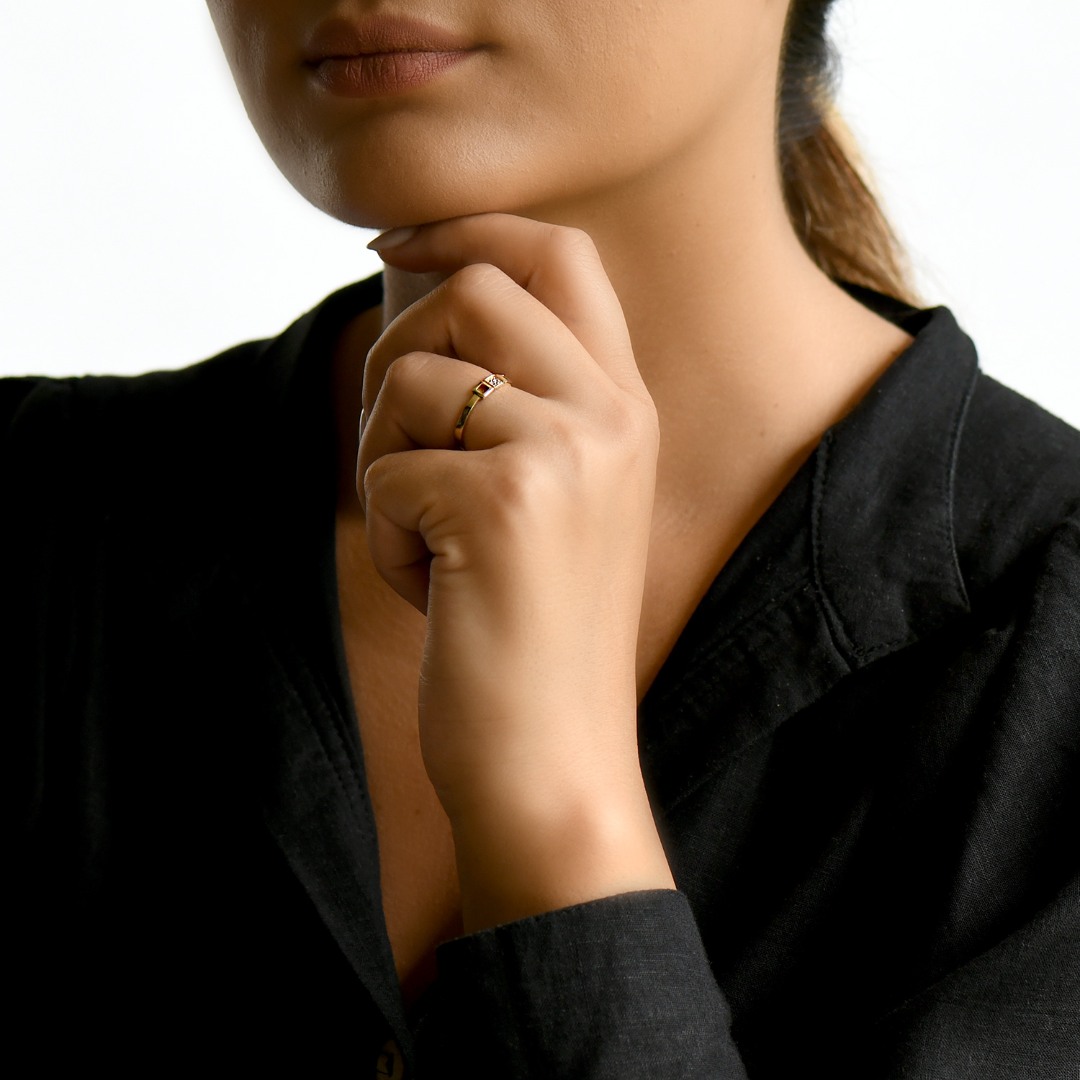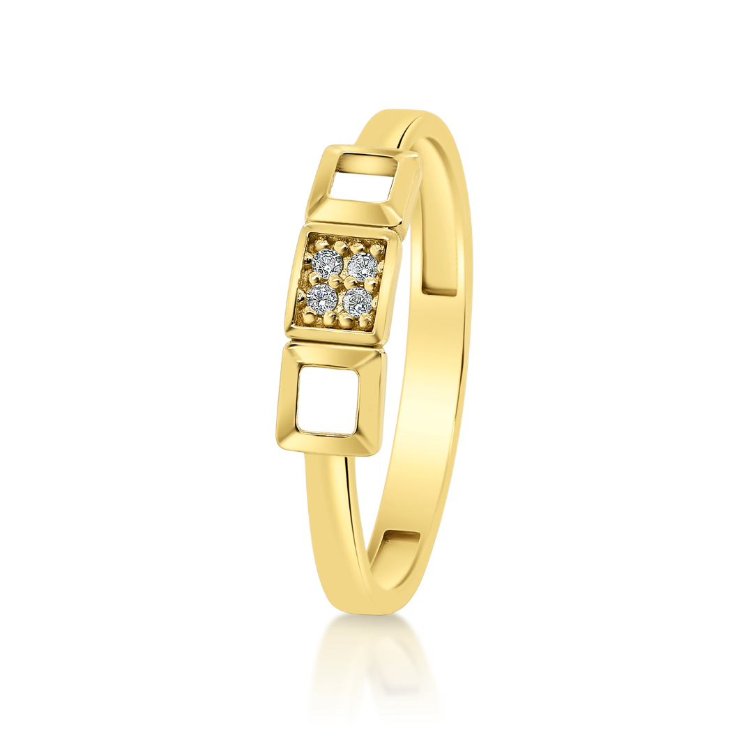 Inel din aur galben de 14K, cu pietre Cubic Zirconia și elemente geometrice decupate.