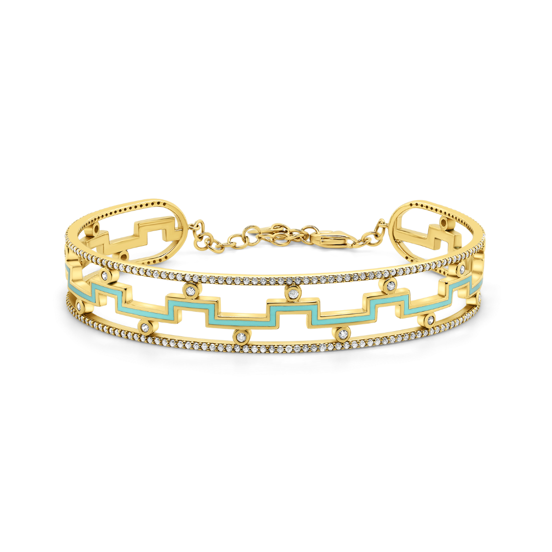 Brățară fixă din aur galben de 14K, cu pietre Cubic Zirconia și Email colorat.