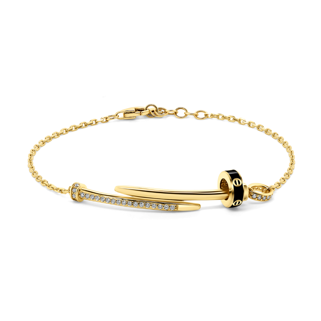 Brățară din aur galben de 14K, încrustată cu pietre Cubic Zirconia și Email negru.