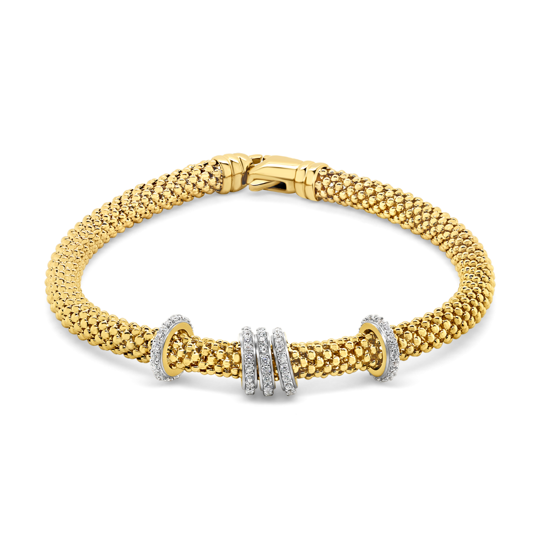 Brățară din aur galben de 14K și charmuri cu rodiu alb încrustate cu pietre Cubic Zirconia.