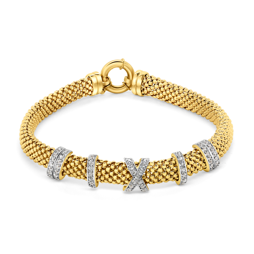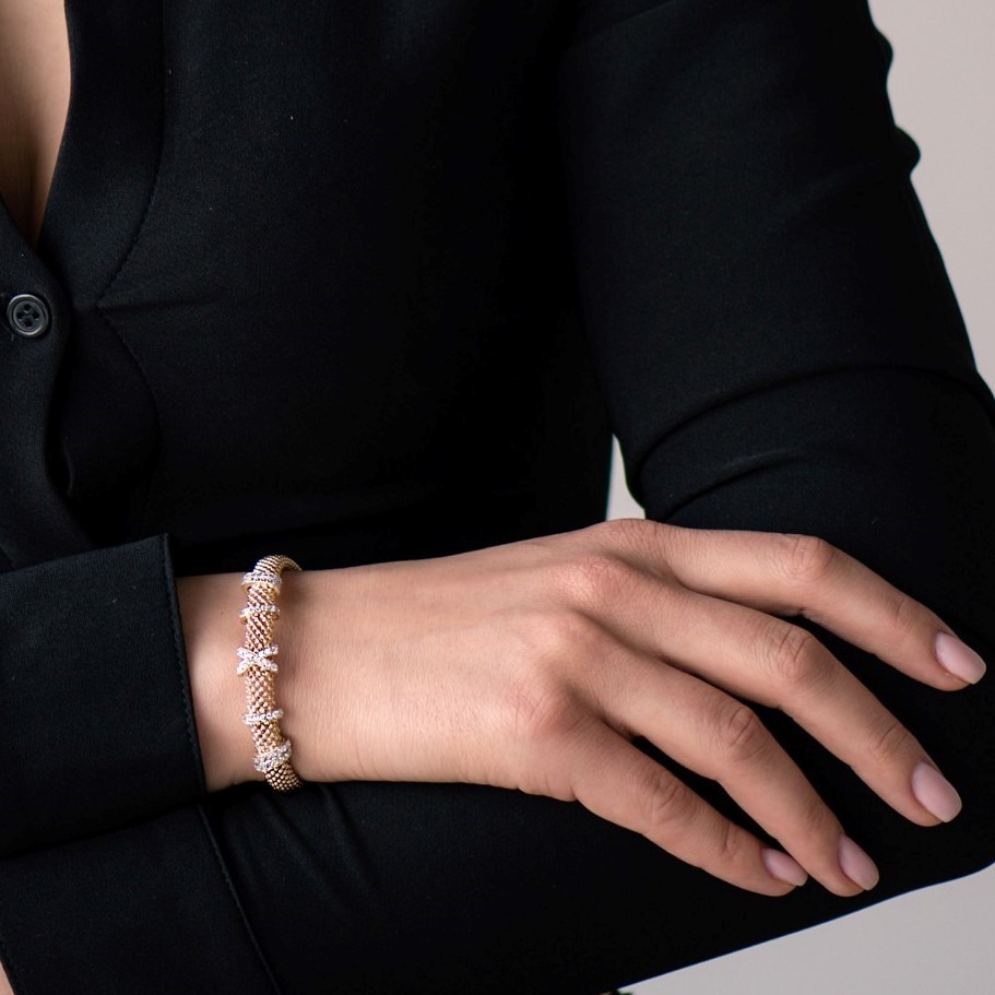 Brățară din aur galben de 14K, cu elemente din aur alb și pietre Cubic Zirconia.