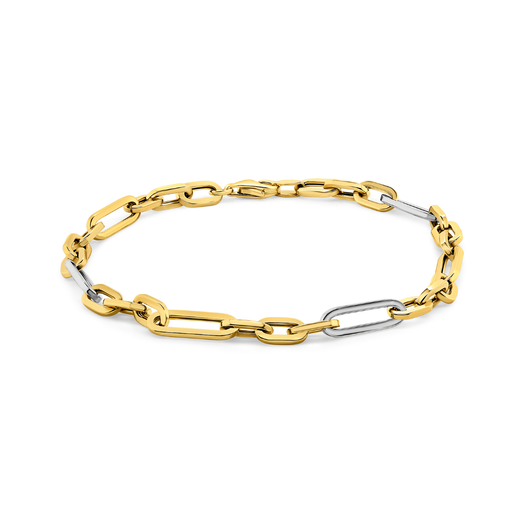 Brățară din aur galben de 14K cu elemente din aur alb.