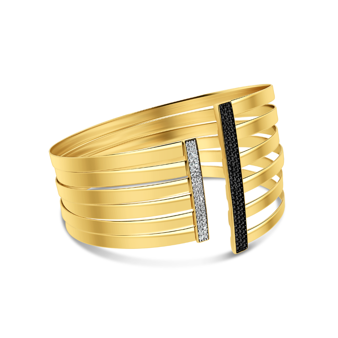 Brățară fixă din aur galben de 14K, cu pietre Cubic Zirconia albe și negre.
