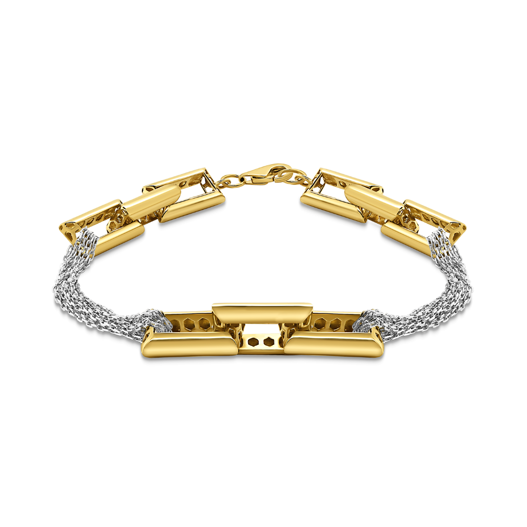 Brățară din aur galben de 14K cu elemente din aur alb.