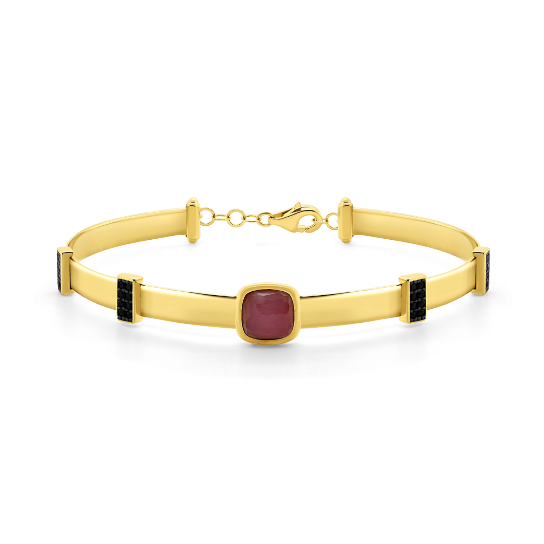 Brățară fixă din aur galben de 14K, cu pietre Cubic Zirconia și Rodiu negru.
