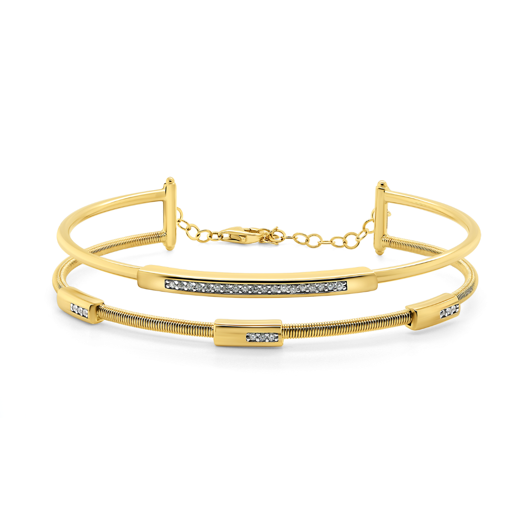 Brățară fixă din aur galben de 14K cu pietre Cubic Zirconia albe.