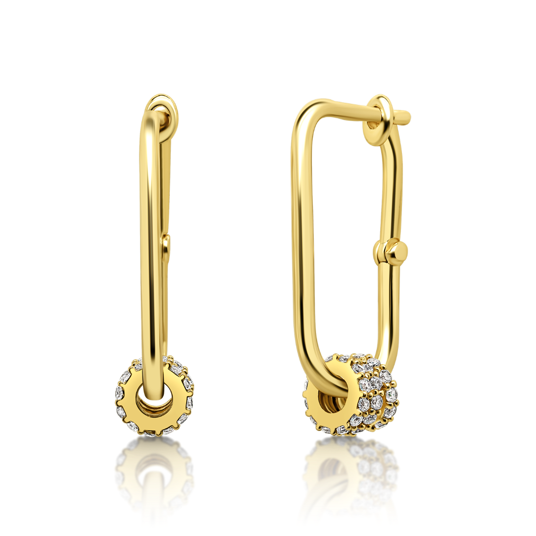Cercei din aur galben de 14K, cu elemente rotunde și pietre Cubic Zirconia.