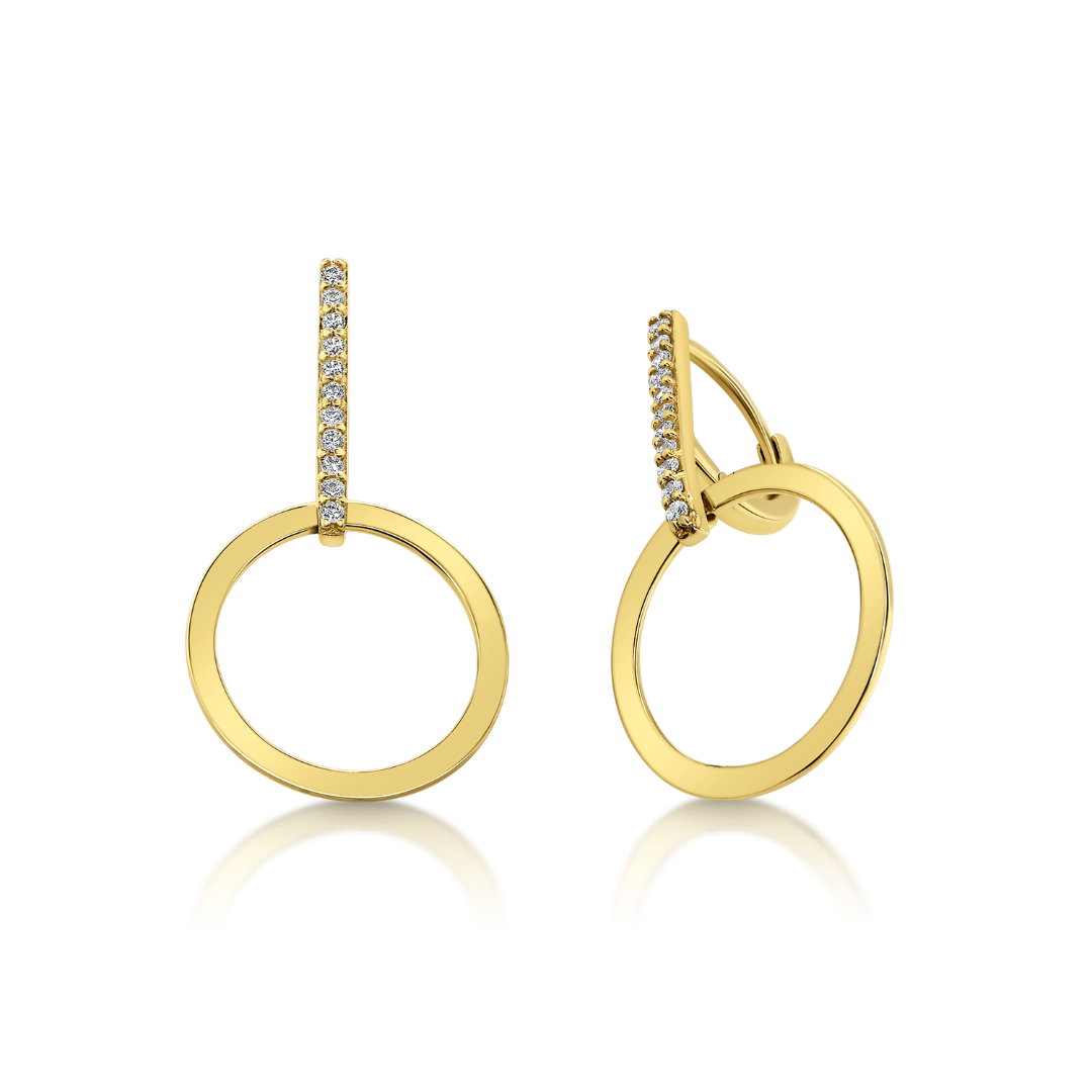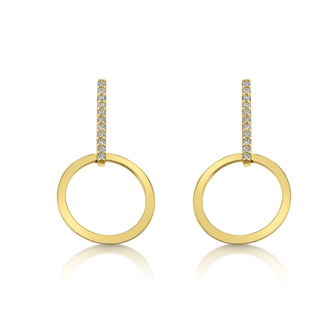 Cercei din aur galben de 14K cu elemente rotunde și pietre zirconia.