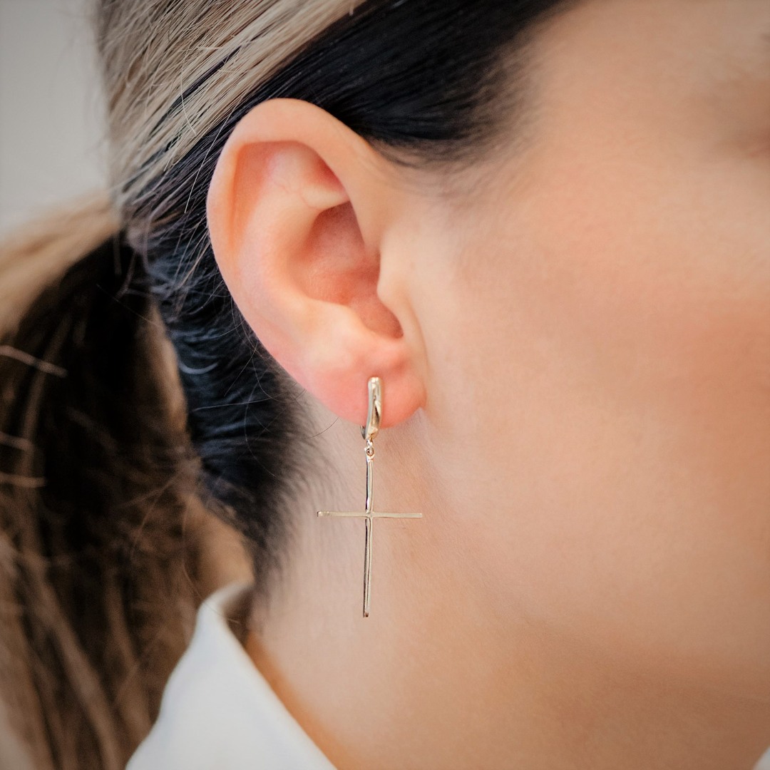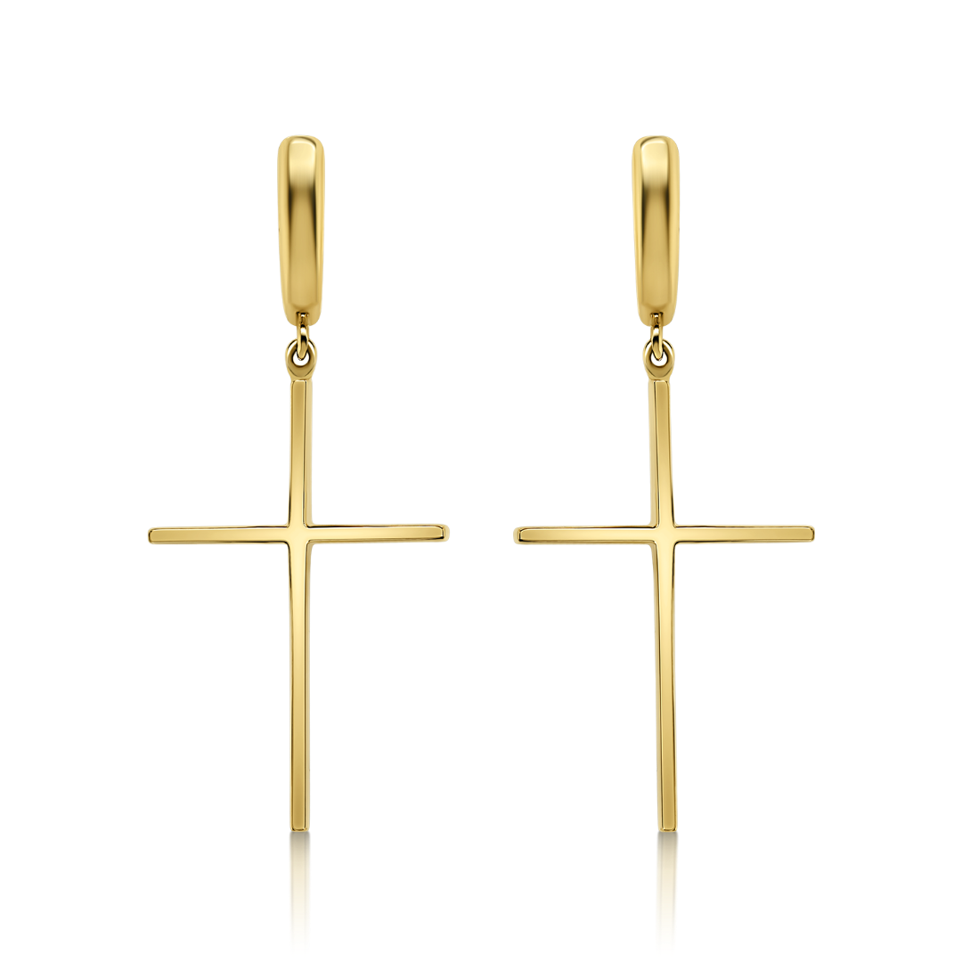 Cercei cu elemente în formă de cruce din aur galben de 14K.