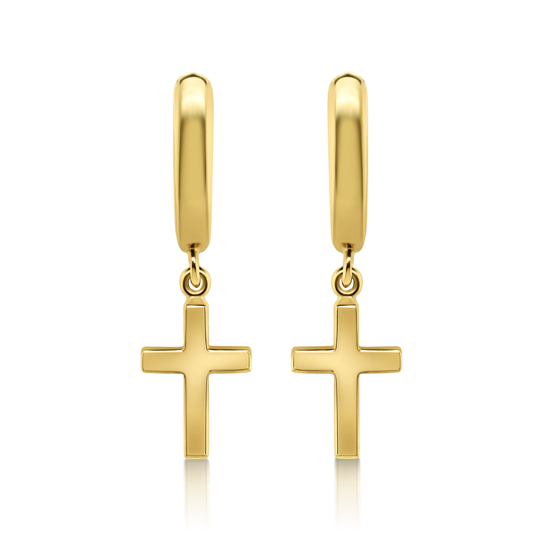 Cercei cu elemente în formă de cruce din aur galben de 14K.