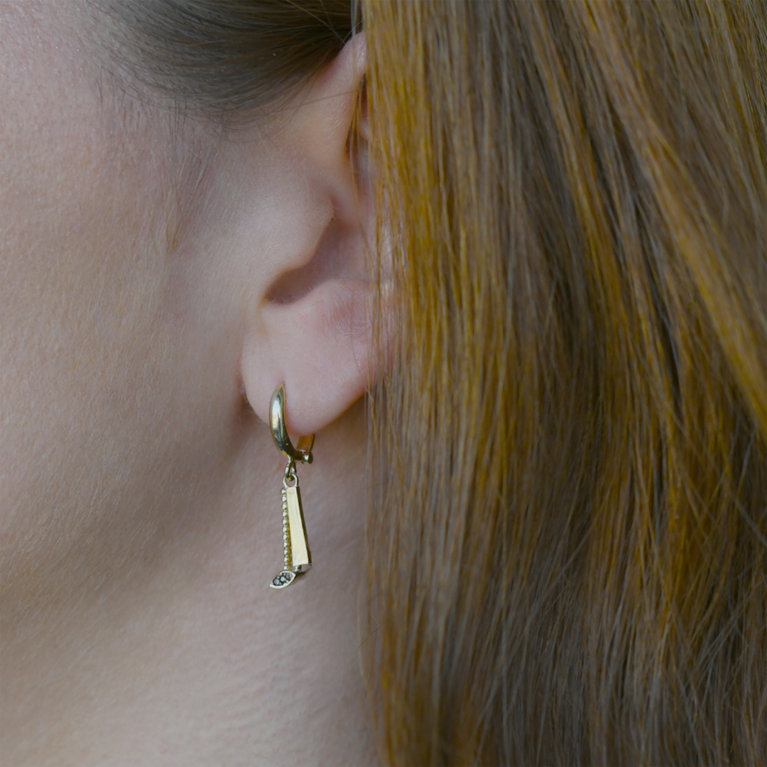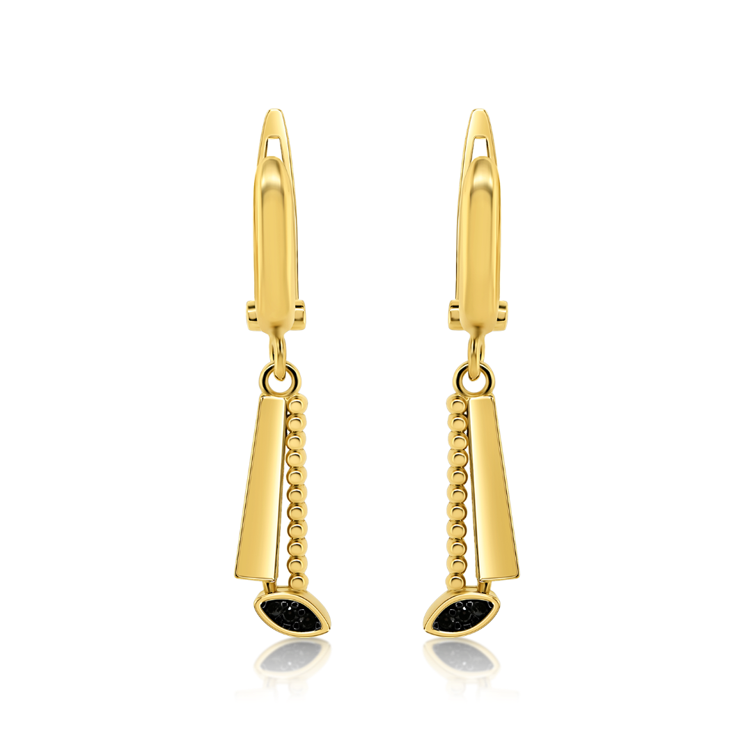 Cercei din aur galben de 14K, cu Rodiu negru și pietre Cubic Zirconia