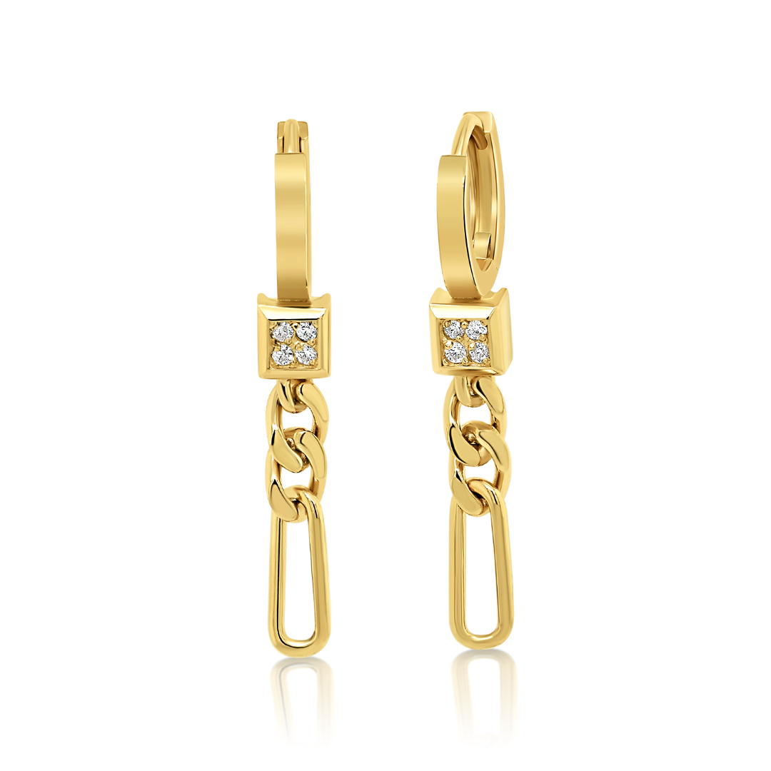 Cercei din aur galben de 14K cu pietre cubic zirconia.