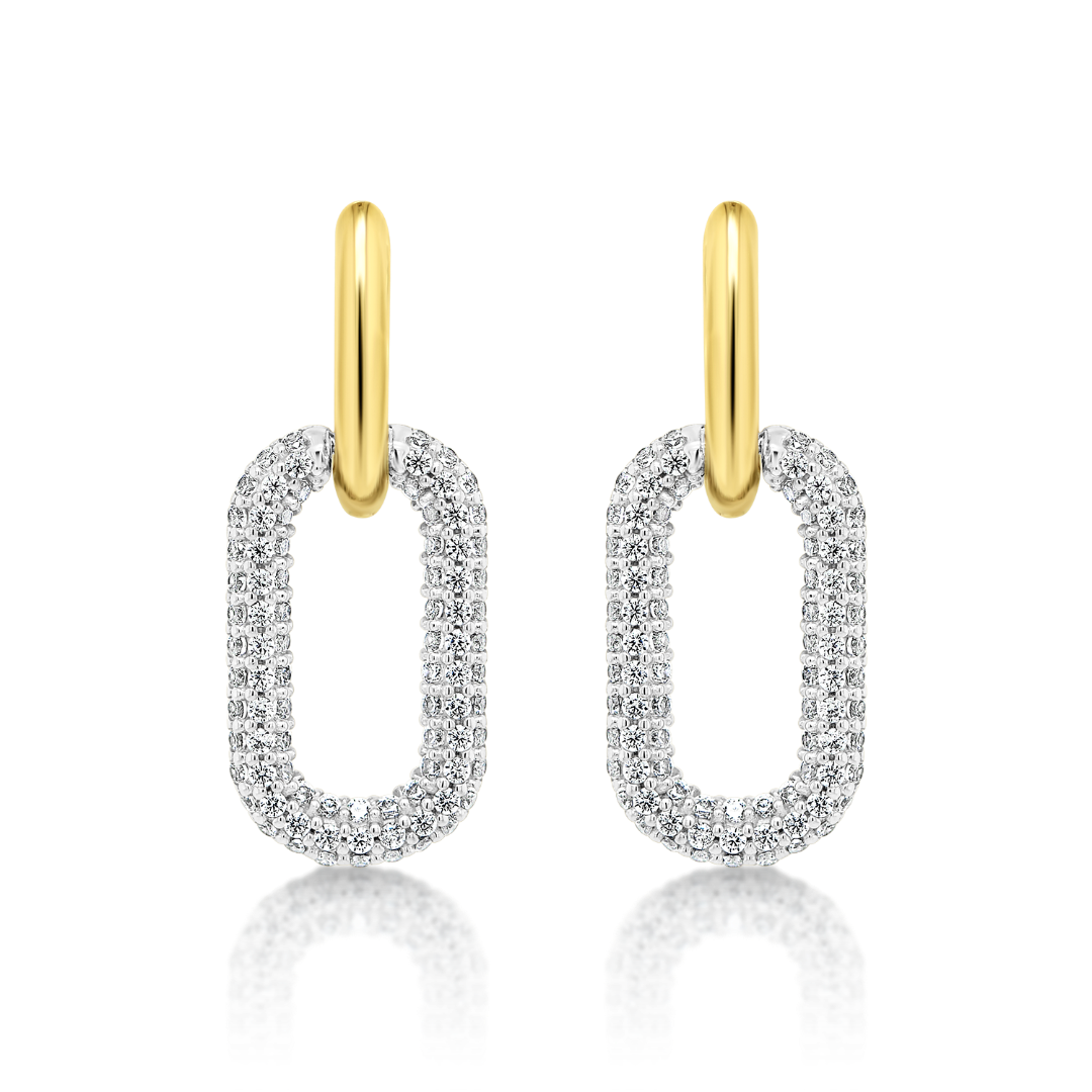 Cercei din aur galben de 14K, cu elemente din aur alb și pietre cubic zirconia.