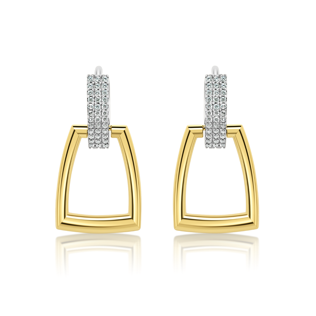 Cercei din aur galben de 14K și elemente cu pietre cubic zirconia.