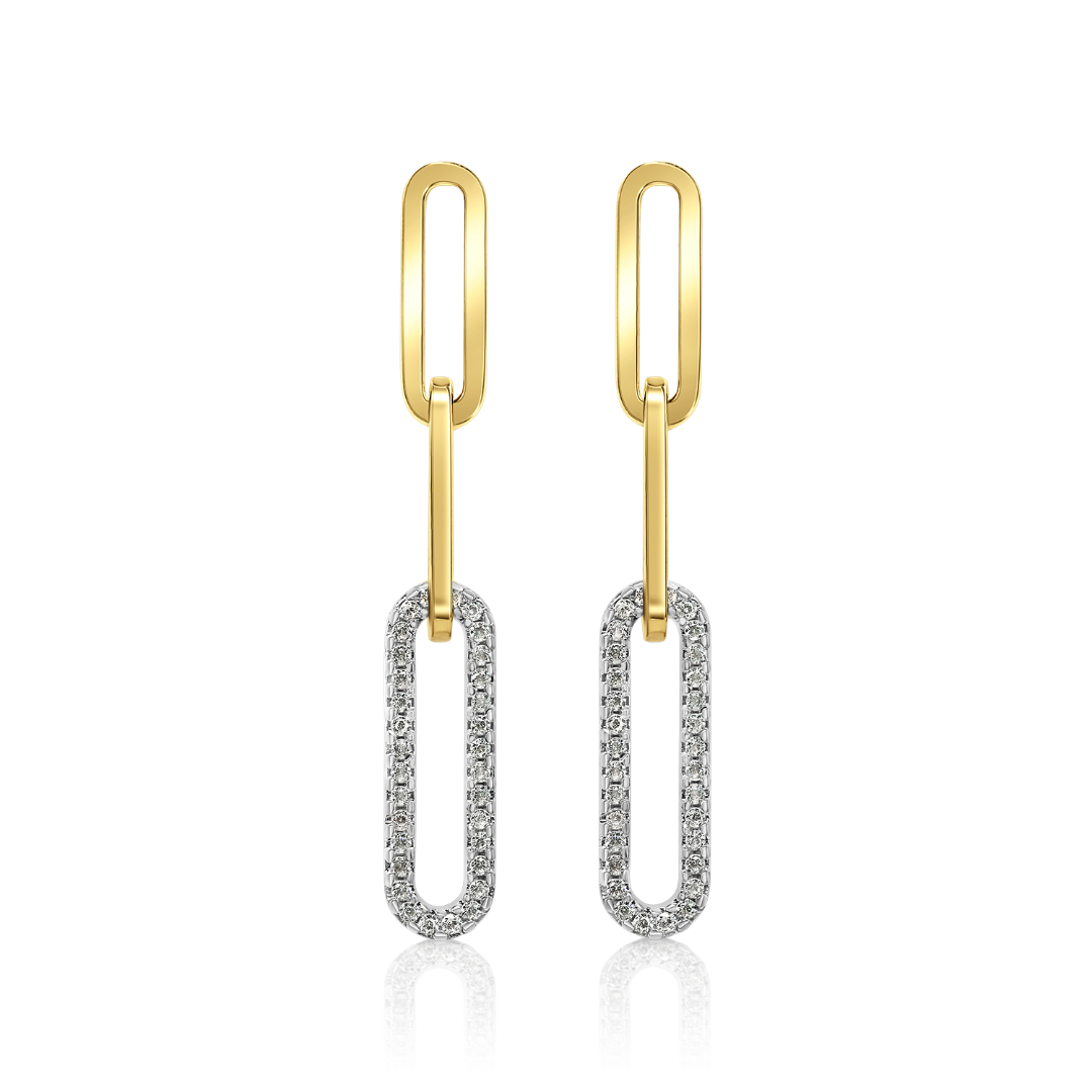 Cercei din aur galben de 14K cu elemente încrustate cu pietre Cubic Zirconia albe.