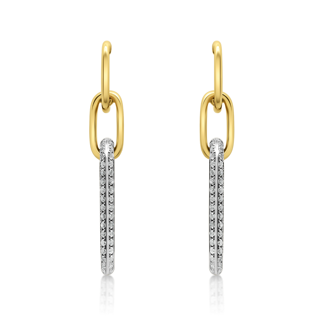 Cercei din aur galben de 18K cu elemente din aur alb încrustate în Diamante Round Brilliant de 0.29ct.
