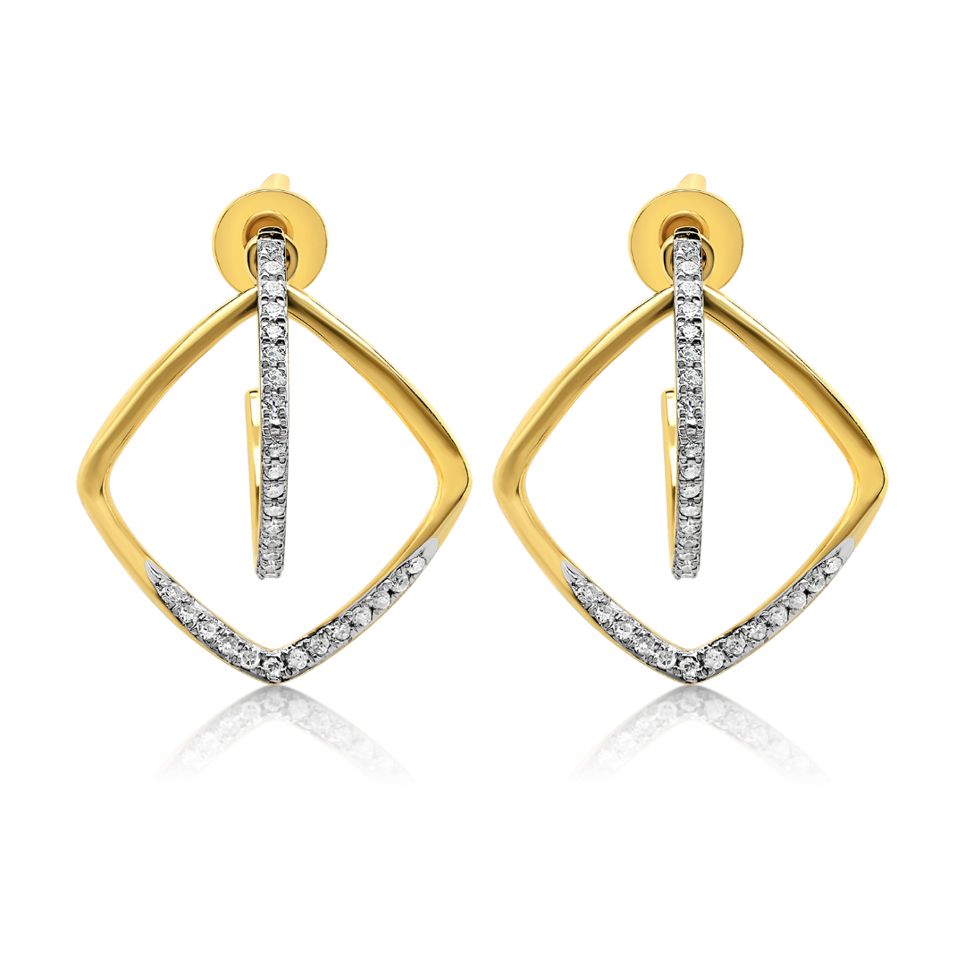 Cercei din aur galben de 18K, încrustați cu 76 de Diamante Round Brilliant cut cu o greutate totală de 0.212ct.