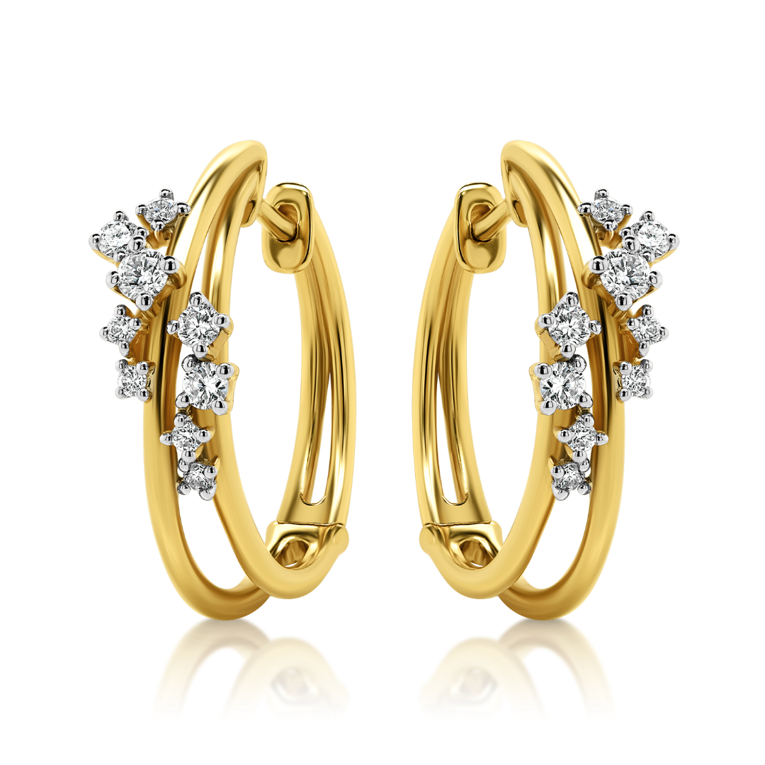Cercei rotunzi din aur galben de 18K, cu 18 Diamante cu o greutate de 0.25ct.