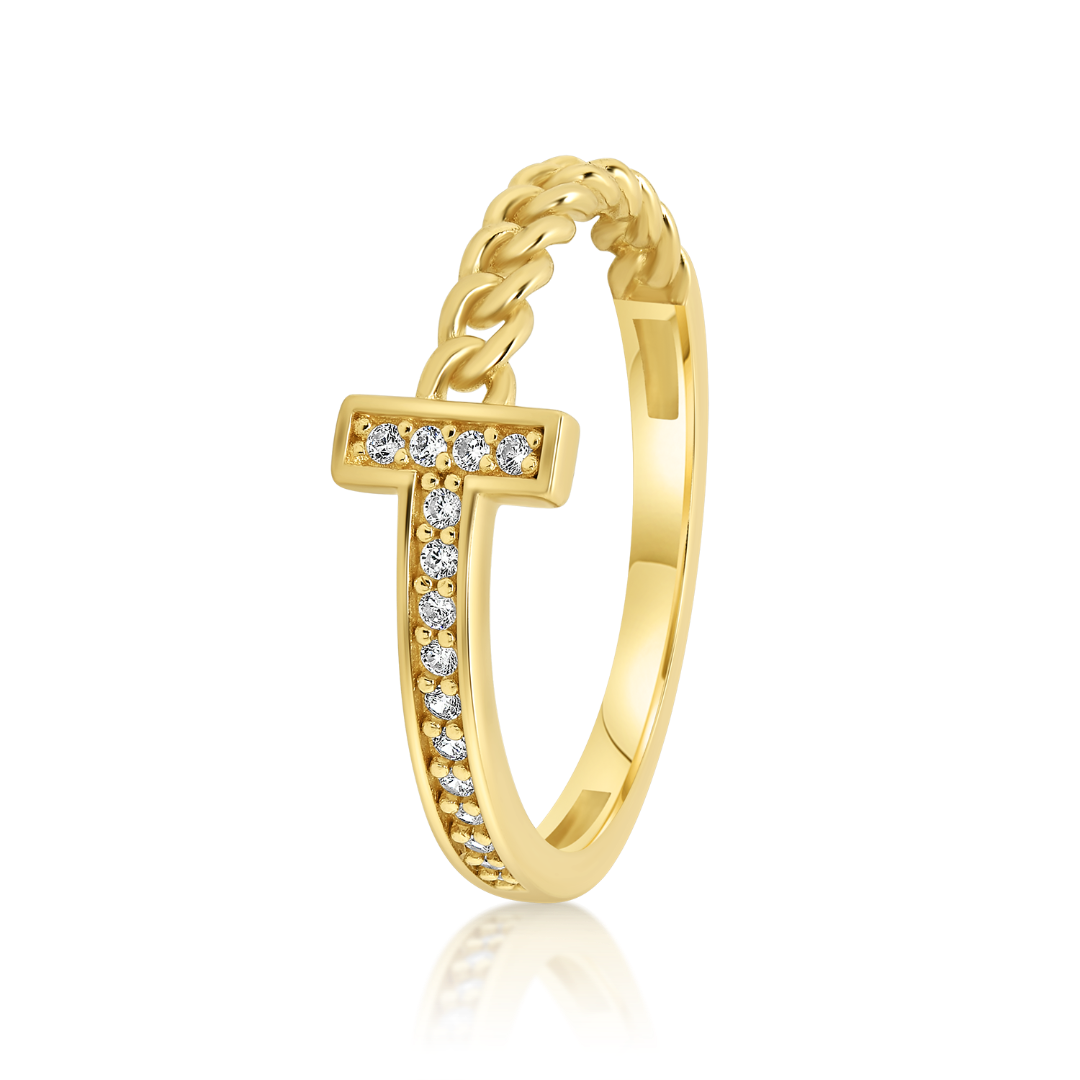 Inel din aur galben de 14K, cu element împletit și pietre Cubic Zirconia.