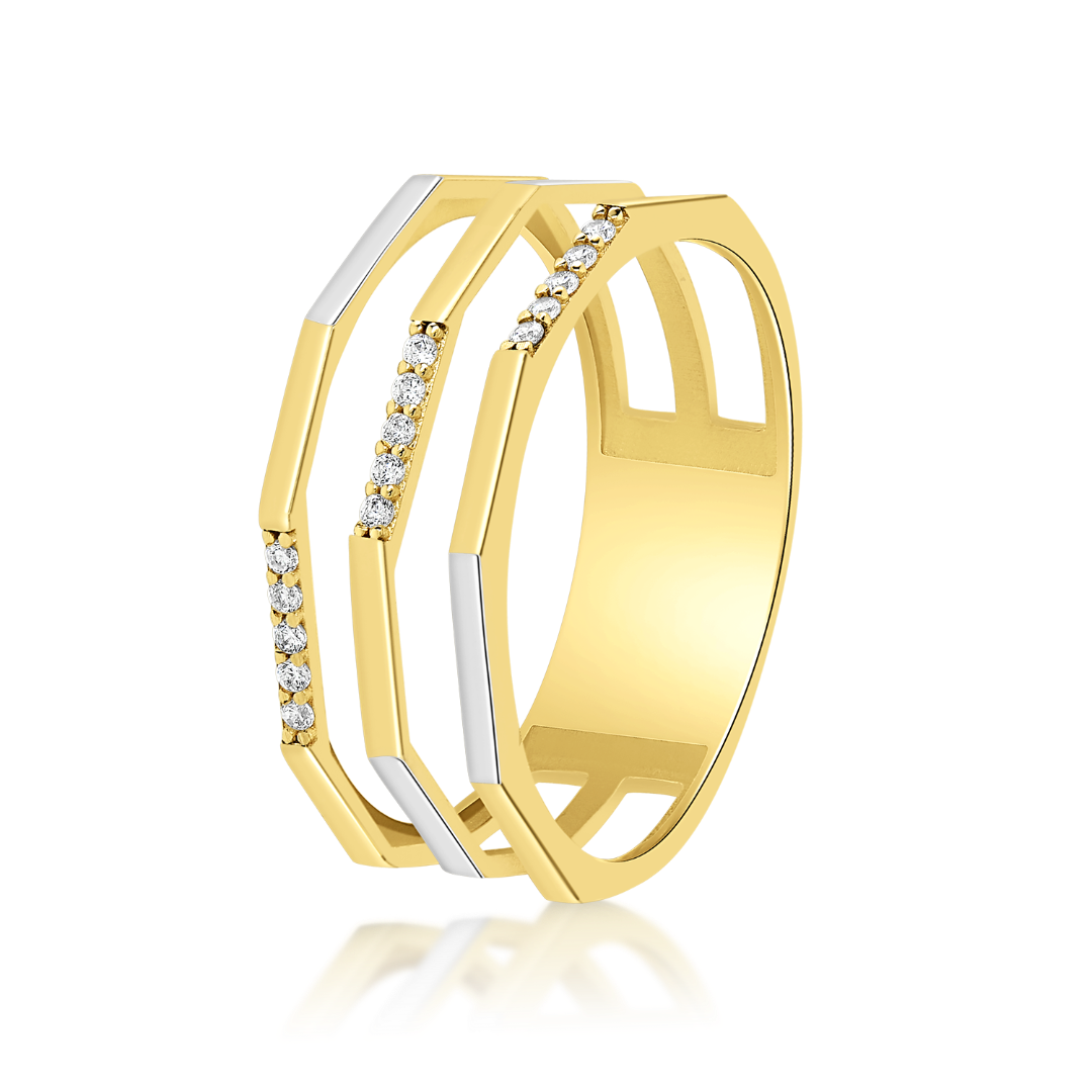 Inel din aur galben de 14K cu pietre cubic zirconia și Rodiu alb.