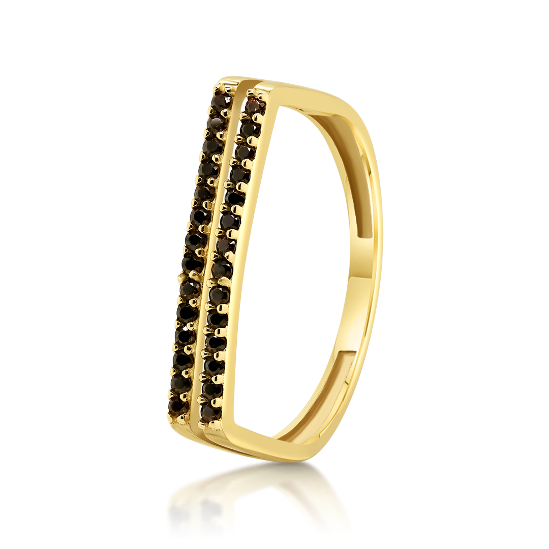 Inel din aur galben de 14K cu pietre Cubic Zirconia negre.