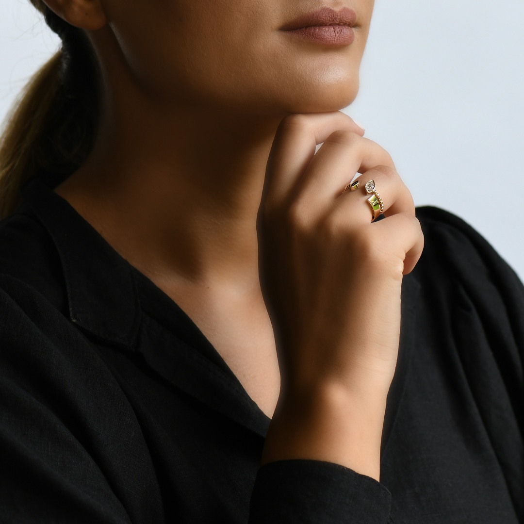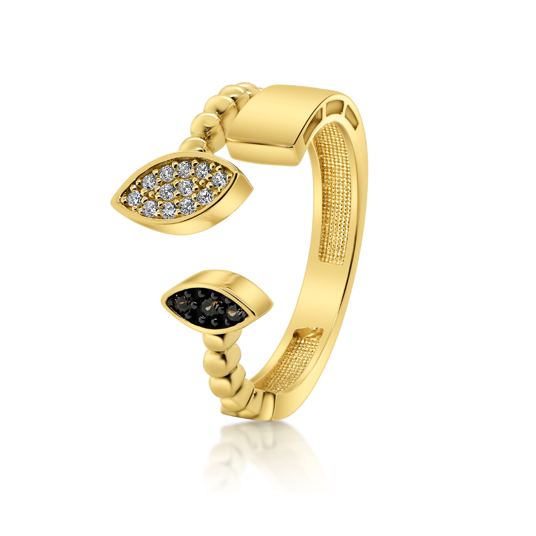 Inel din aur galben de 14K cu Zirconia negre și incolore.