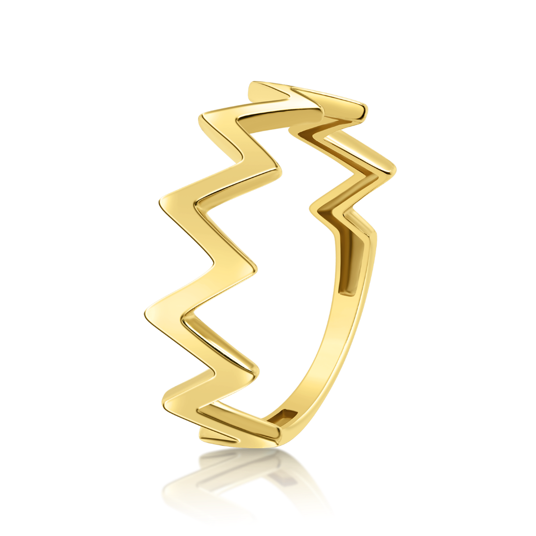 Inel din aur galben de 14K cu design geometric.