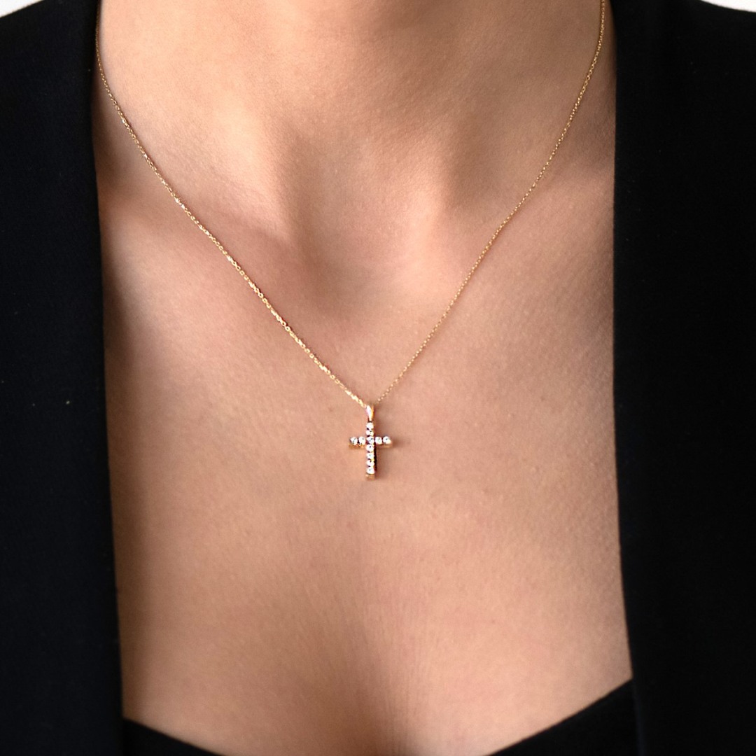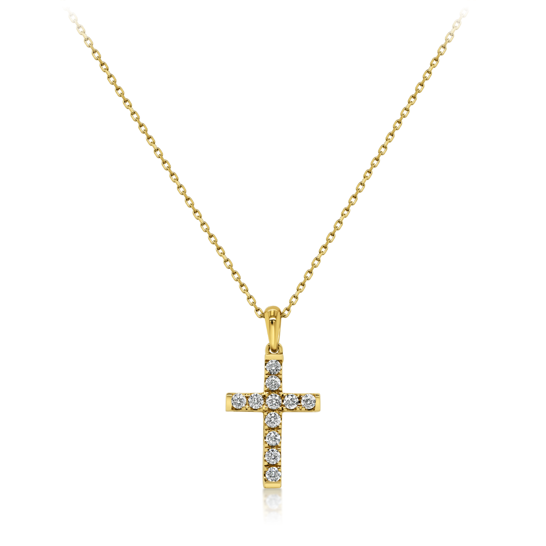 Colier din aur galben de 18K, cu pandantiv cruce încrustat cu 11 Diamante albe de 0.20ct.