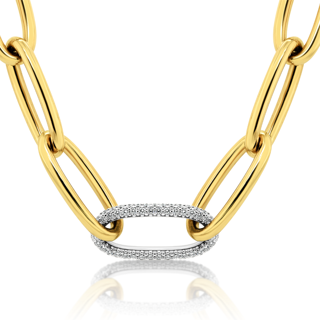 Lanț din aur galben de 14K și pandantiv încrustat cu 108 Diamante Round Brilliant cu o greutate totală de 1.40ct.