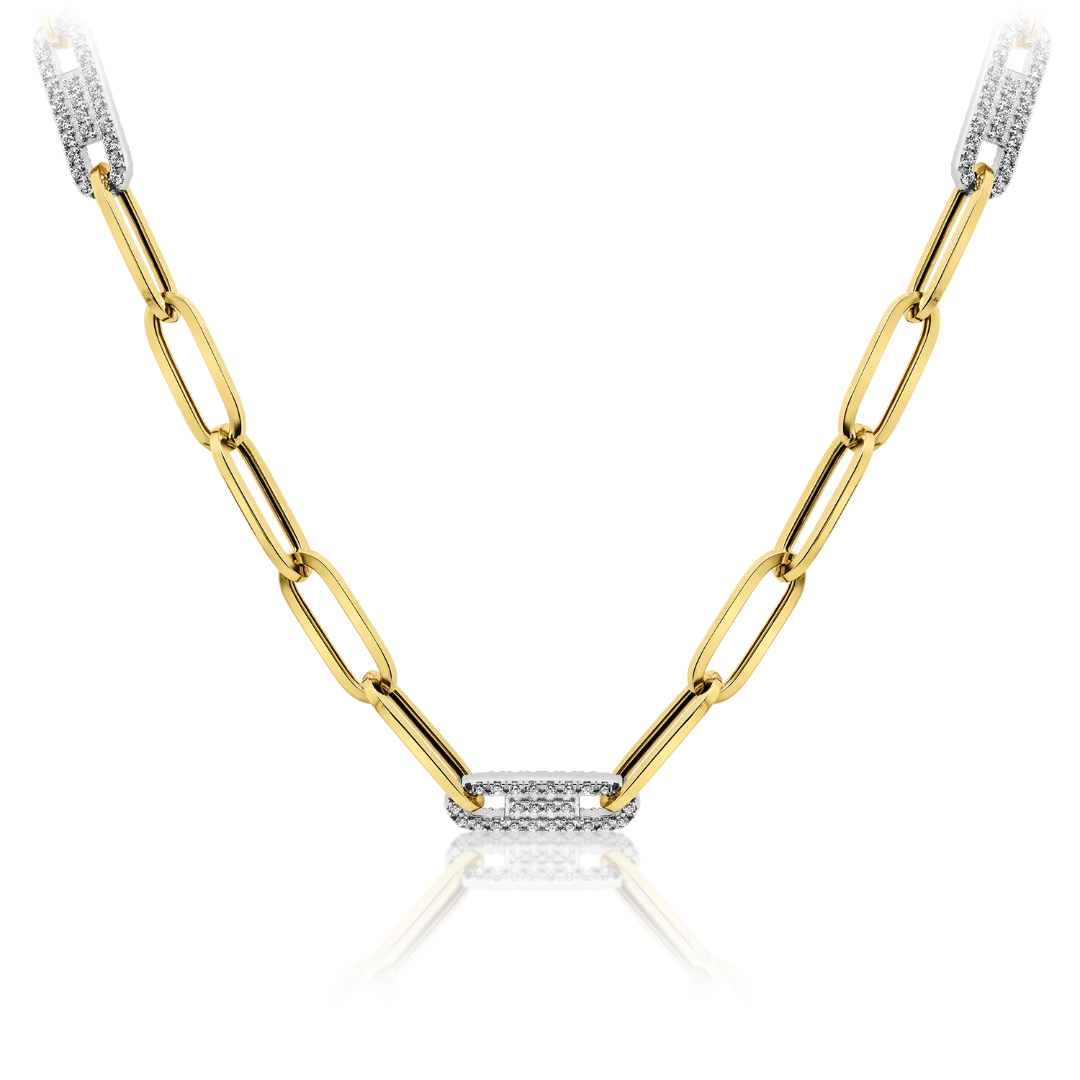 Lanț din aur galben de 14K cu pietre Cubic Zirconia.
