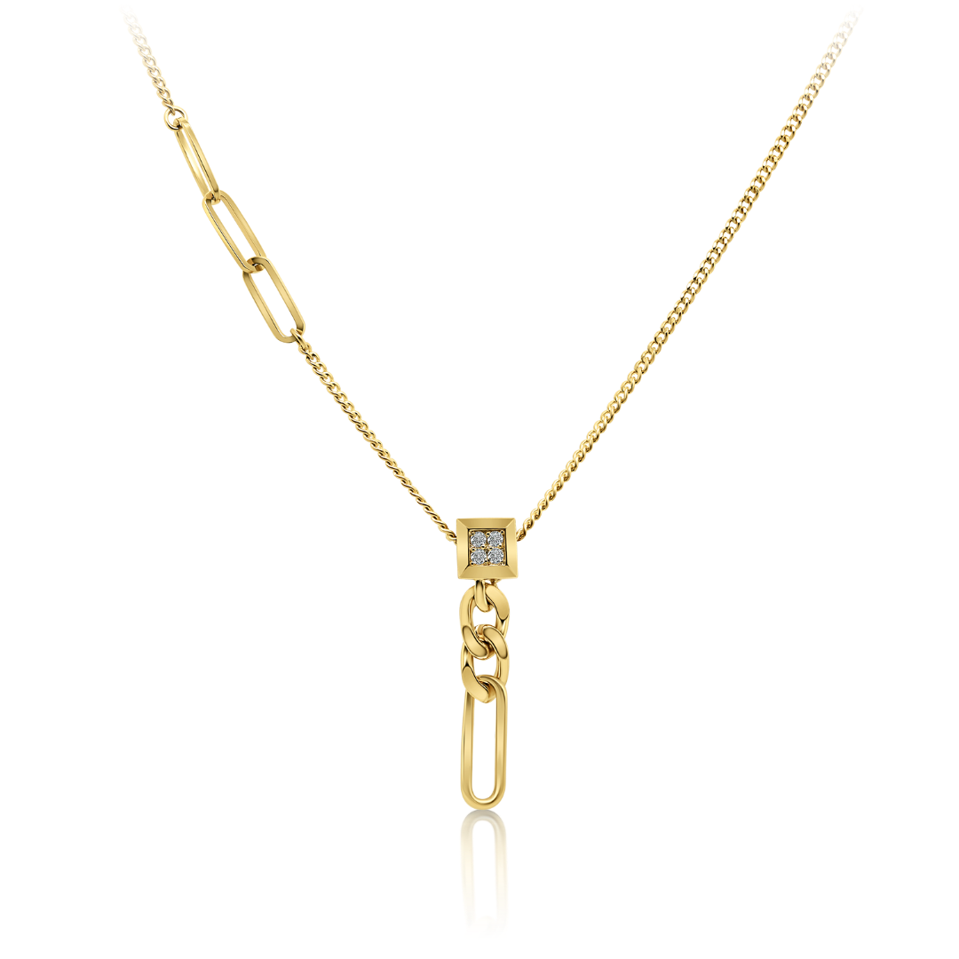 Lanț din aur galben de 14K și pandantiv cu pietre cubic zirconia.