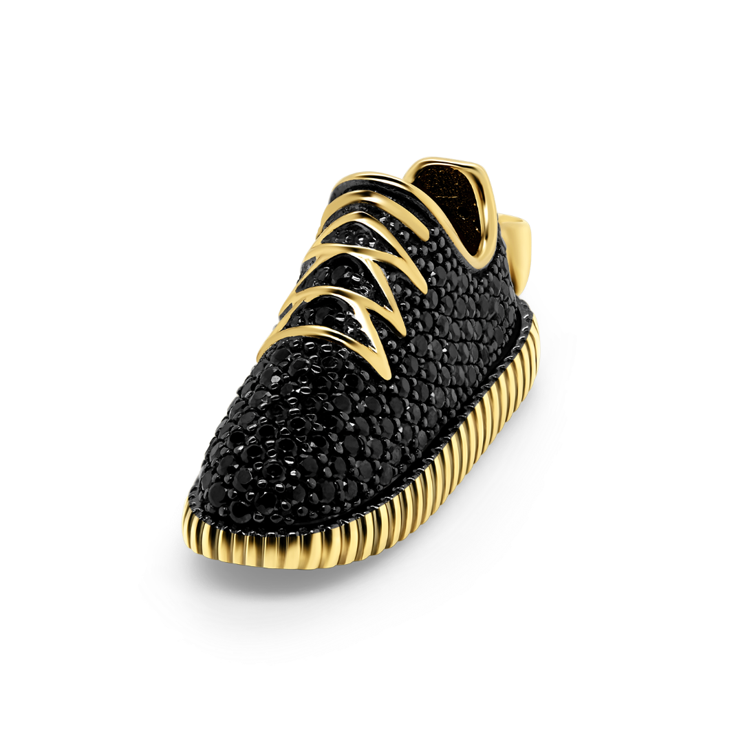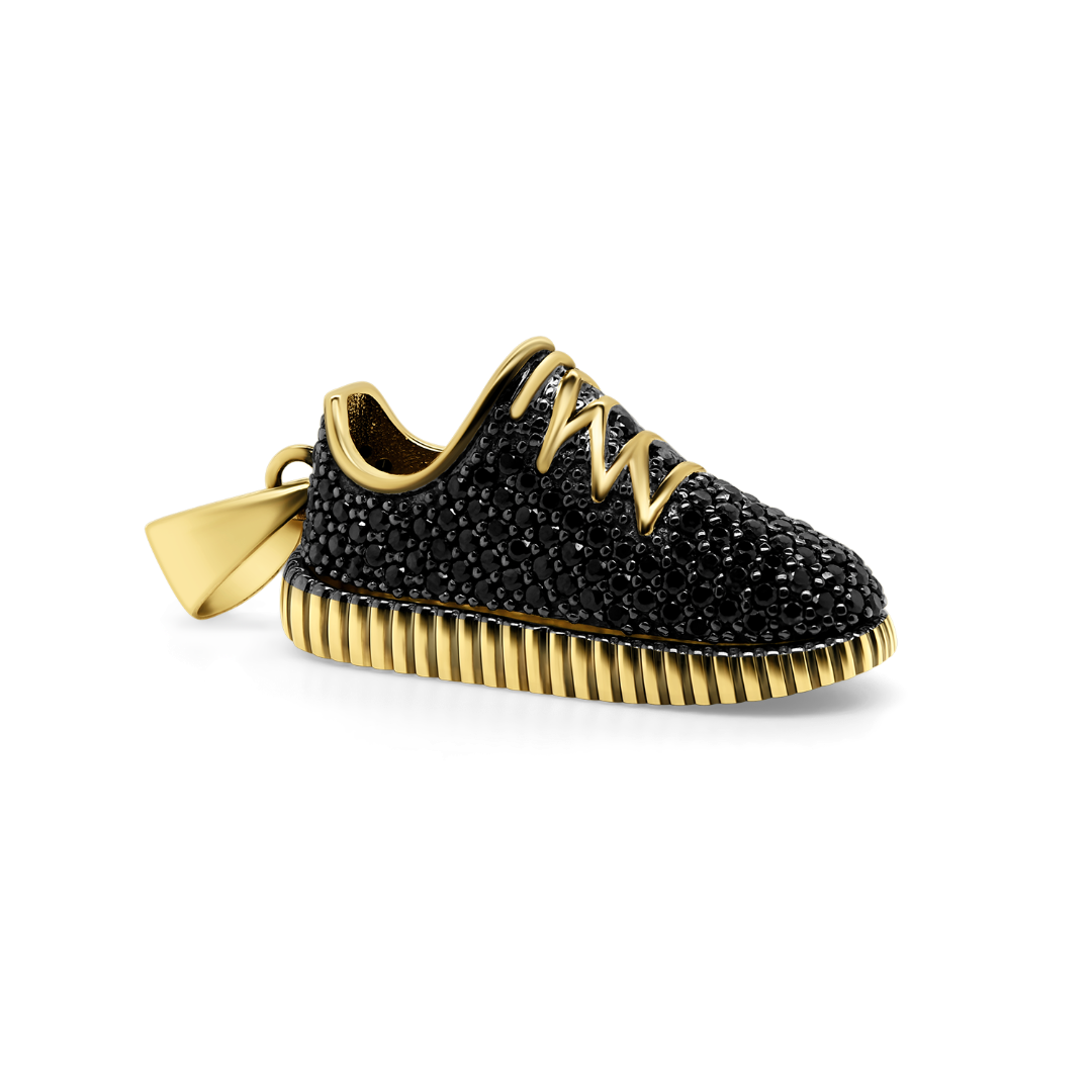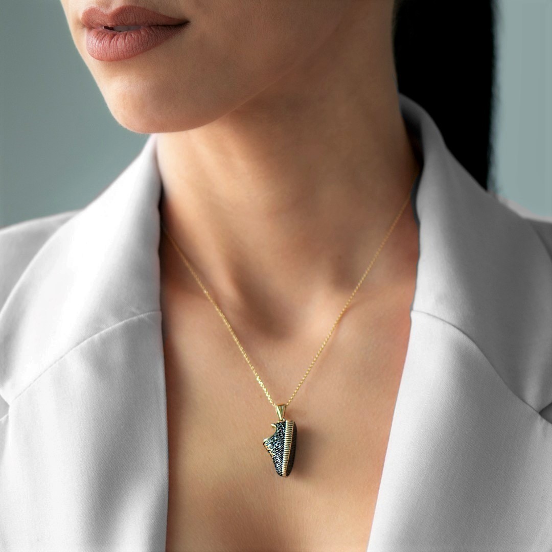 Pandantiv din aur galben de 14K cu pietre Cubic Zirconia negre.