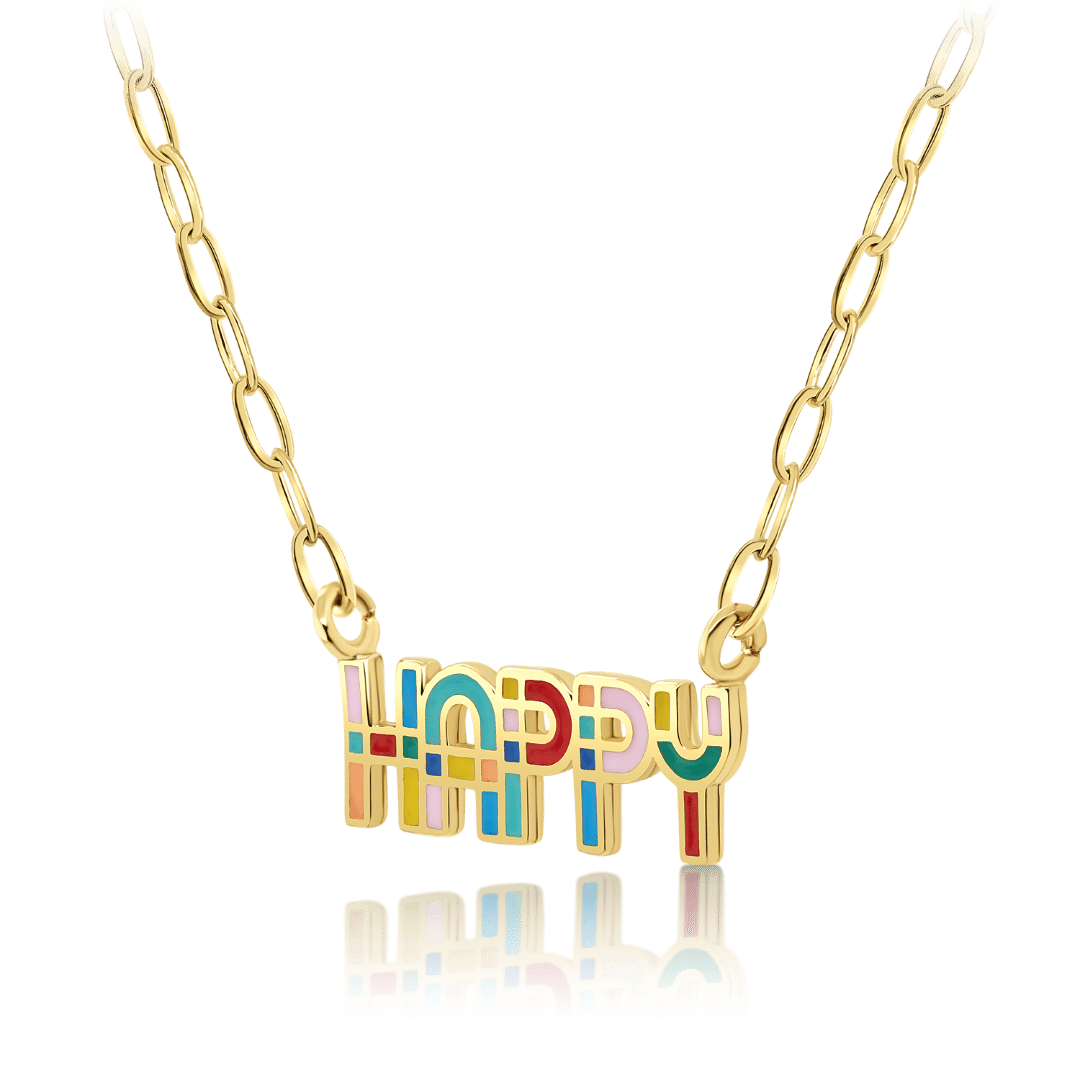 Lanț din aur galben de 14K și pandantiv "HAPPY" cu Email colorat.