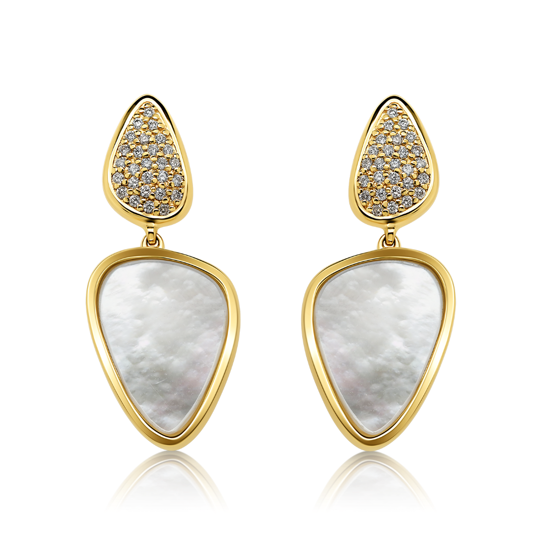 Cercei din aur galben de 18K, cu Diamante și Sidef