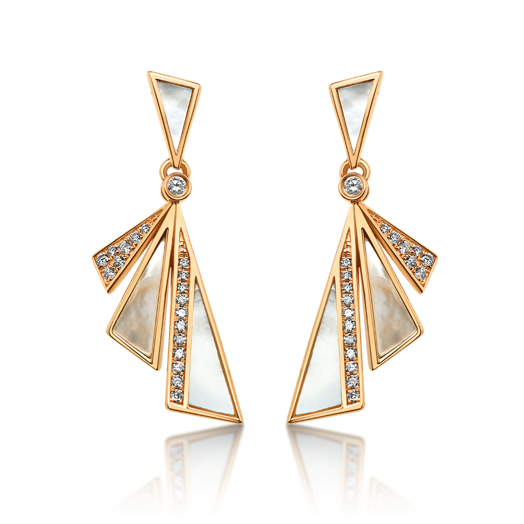 Cercei din aur roz de 18K, cu Diamante și Sidef