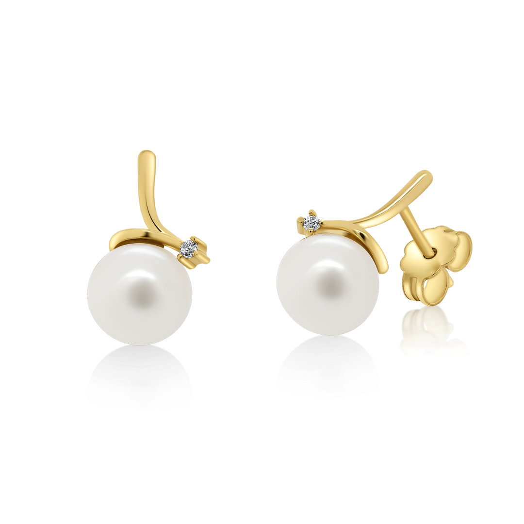 Cercei din aur galben de 14K, cu Perle albe de cultură