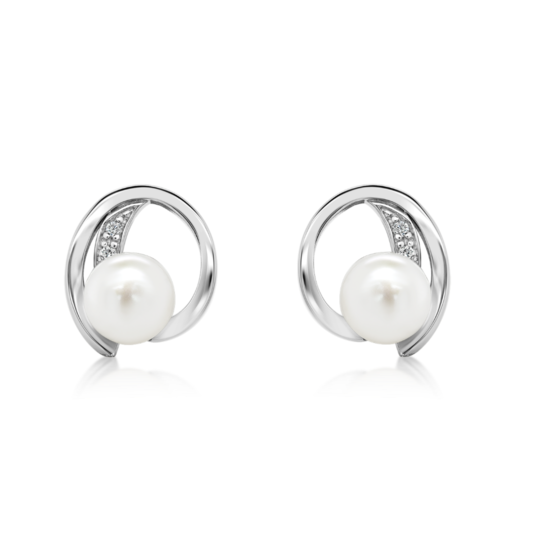 Cercei din aur alb de 14K cu pietre Cubic Zirconia și Perle