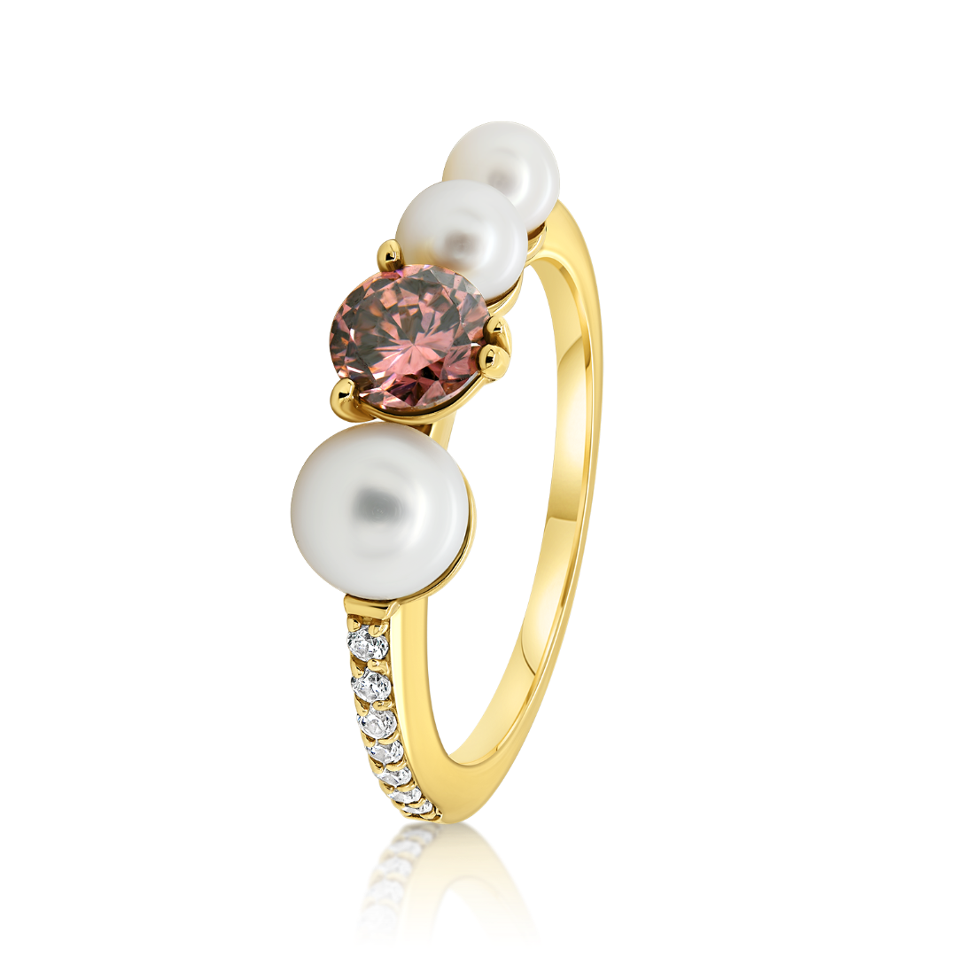 Inel din aur galben de 14K, cu Perle și pietre Cubic Zirconia.