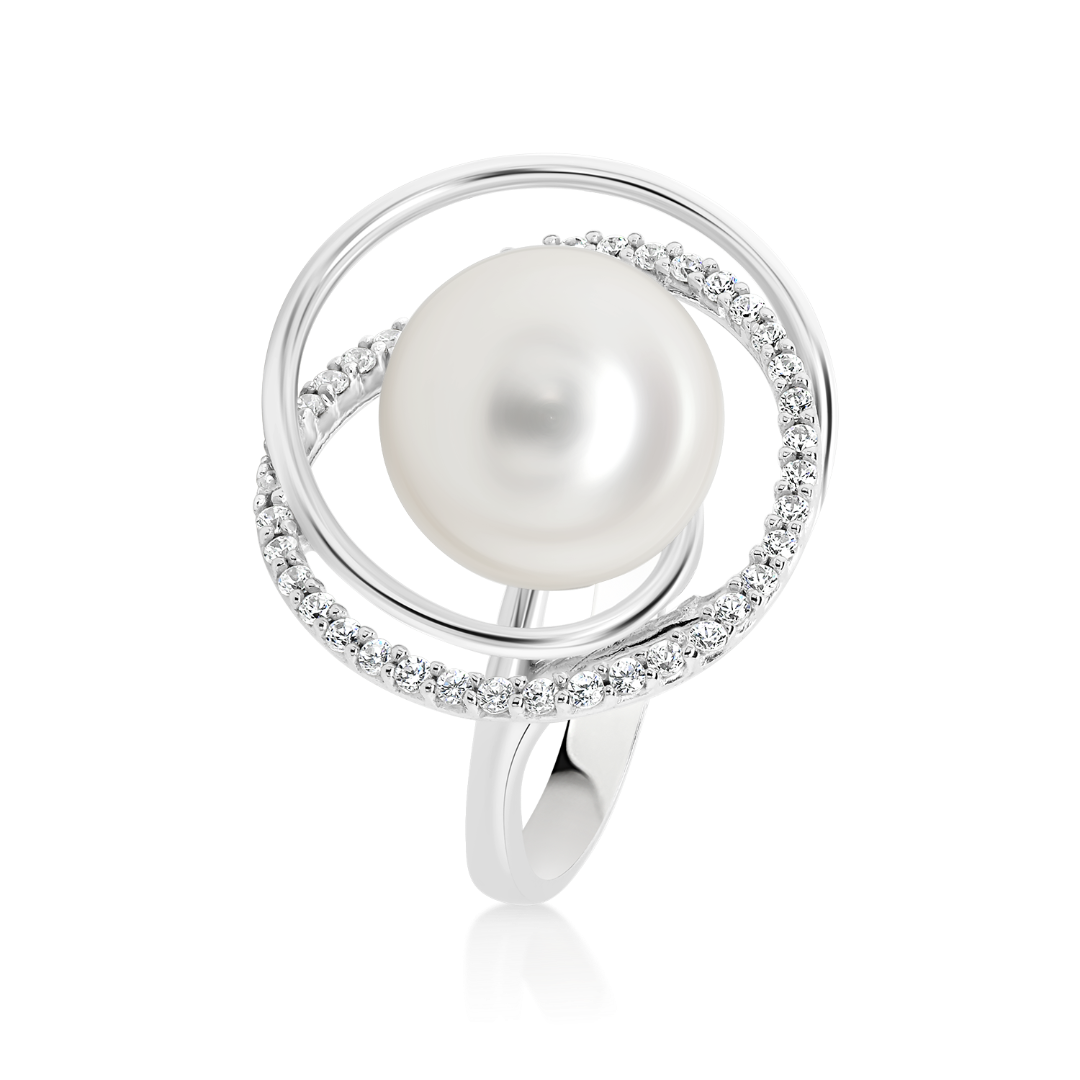 Inel din aur alb de 14K cu Perlă de cultură și zirconii incolore.