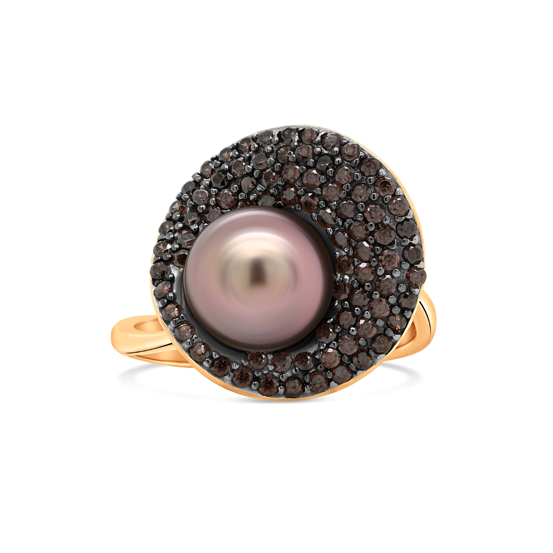 Inel din aur roz de 14K cu Perlă de cultură și zirconia maro.
