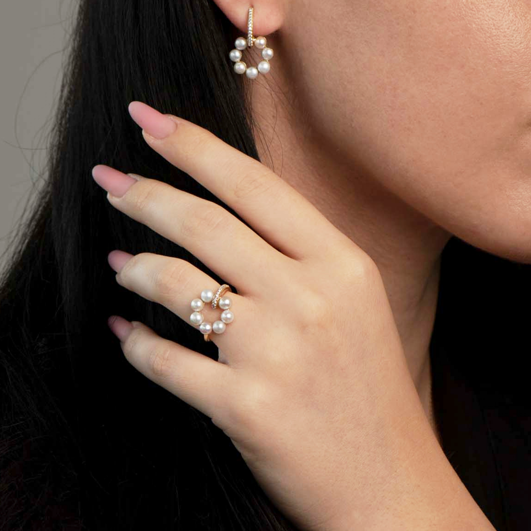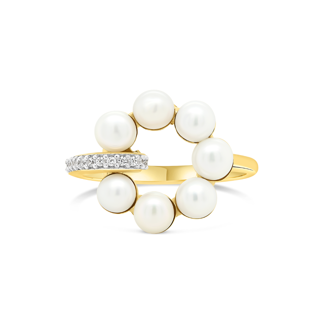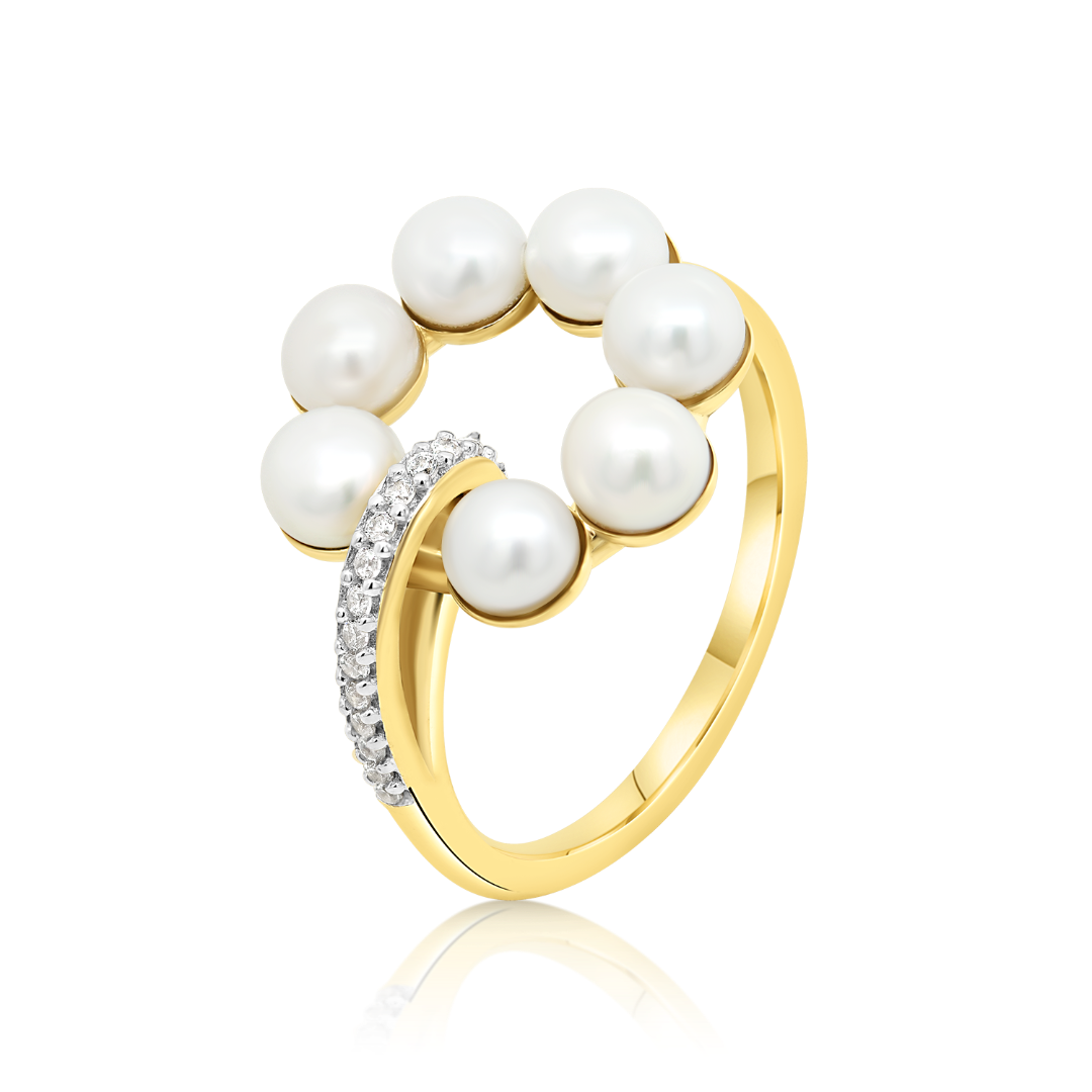 Inel din aur galben de 14K, cu Perle de cultură și pietre cubic zirconia.