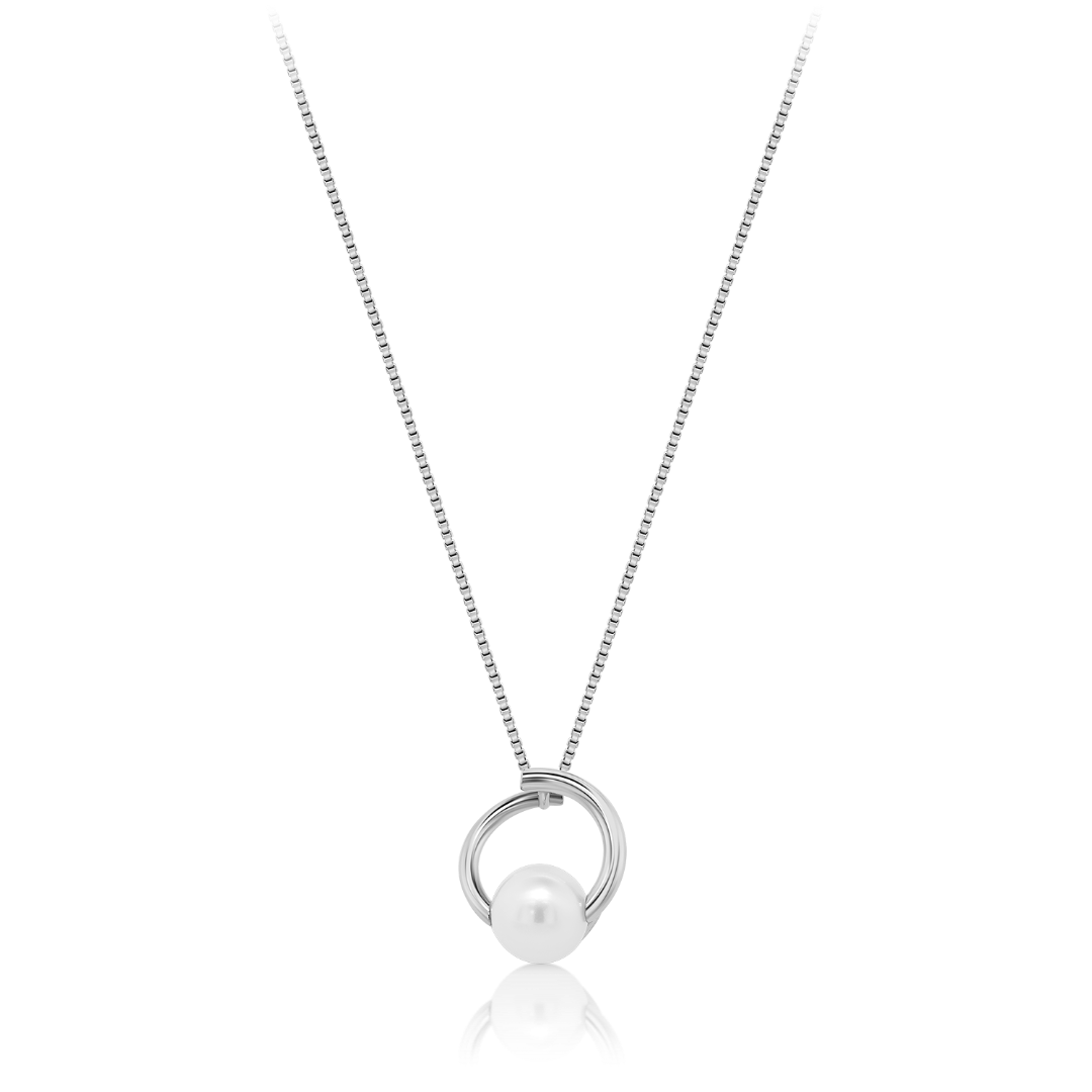 Lanț din aur alb de 14K și pandantiv cu Perlă de cultură.