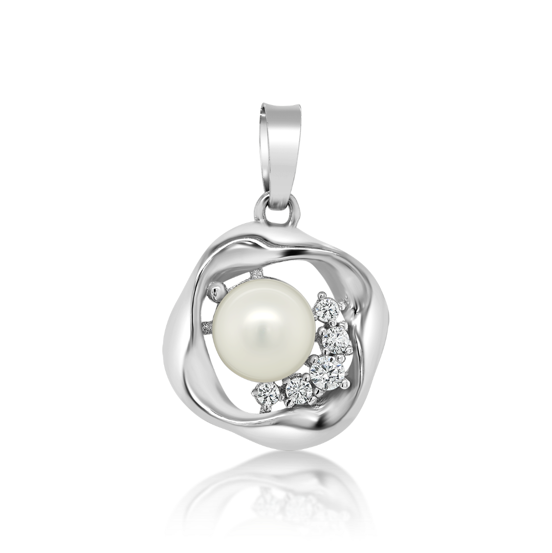 Pandantiv din aur alb de 14K cu Perlă și pietre Cubic Zirconia.