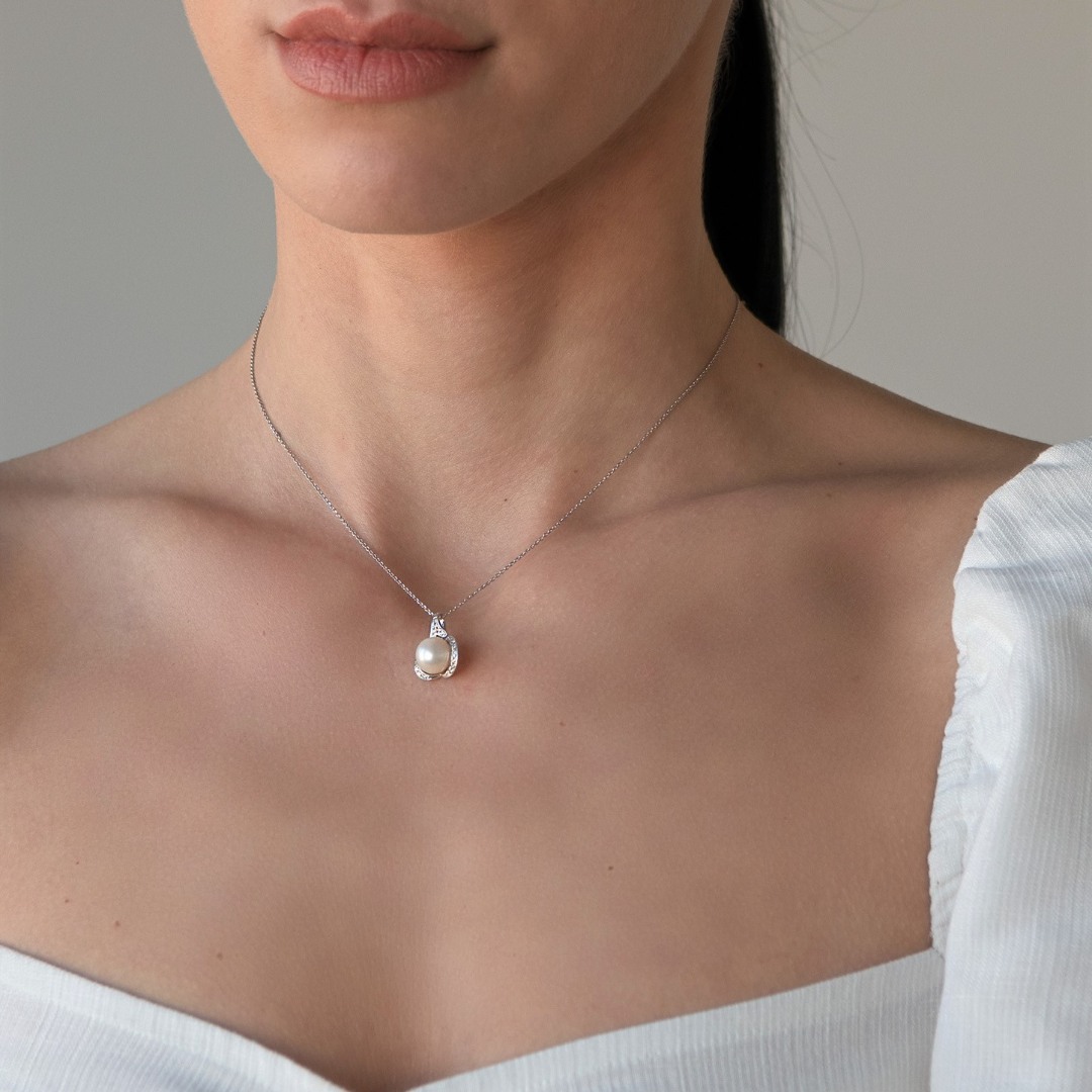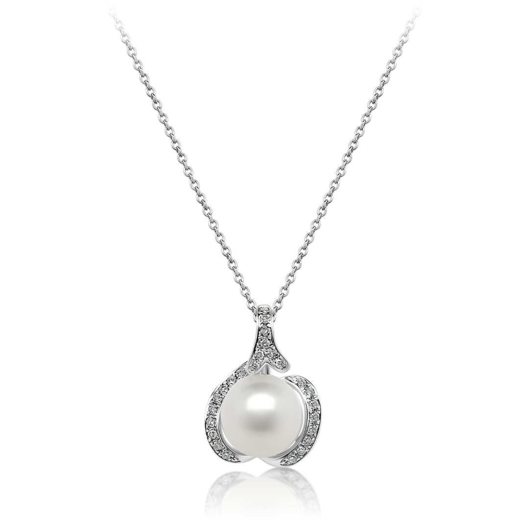 Pandantiv din aur alb de 18K, cu Diamante și Perlă