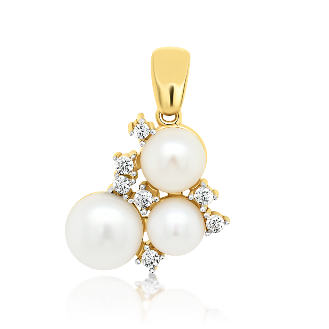Pandantiv din aur galben de 14K cu Perle și pietre Cubic Zirconia.