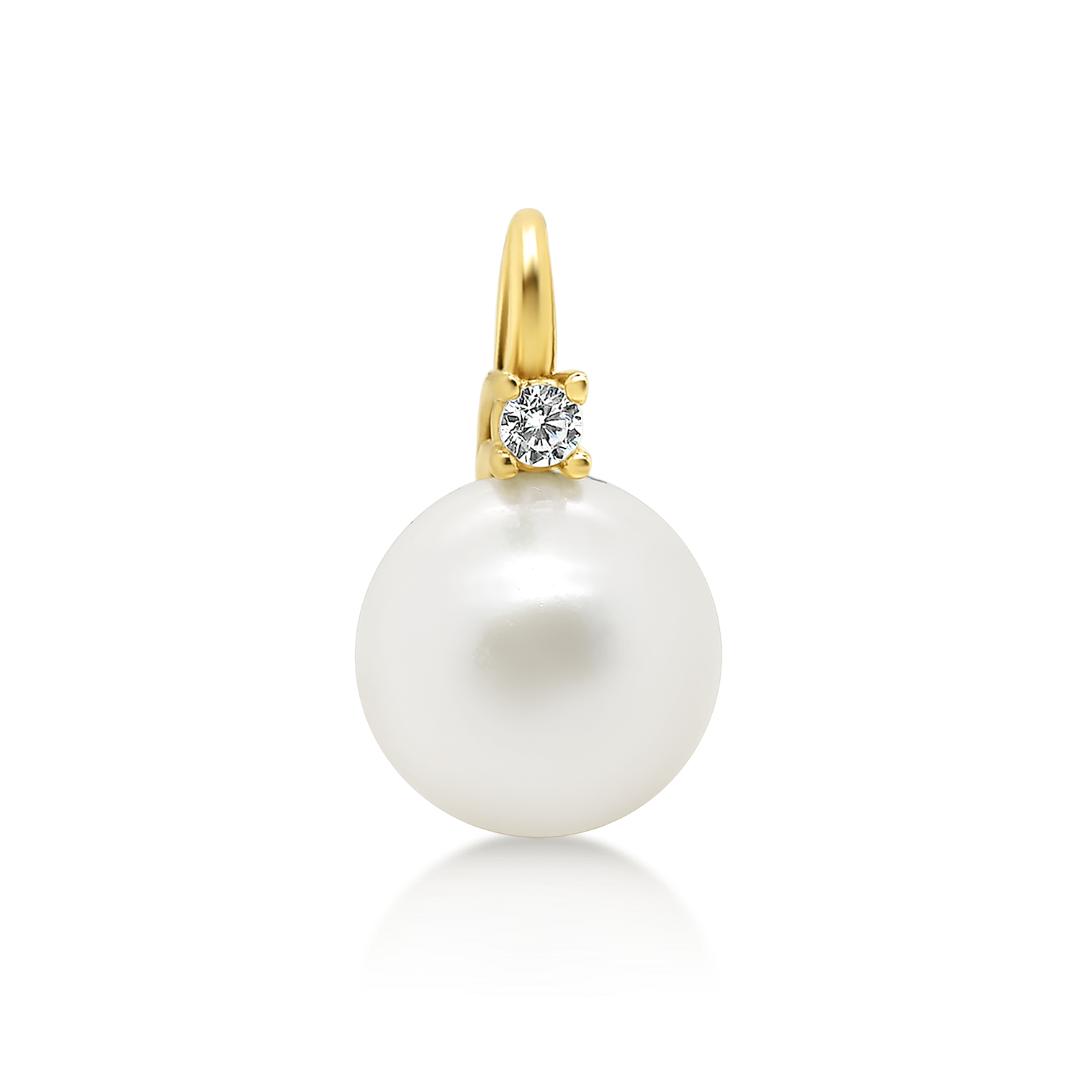 Pandantiv din aur galben de 14K cu Perlă albă de cultură și piatră Cubic Zirconia.