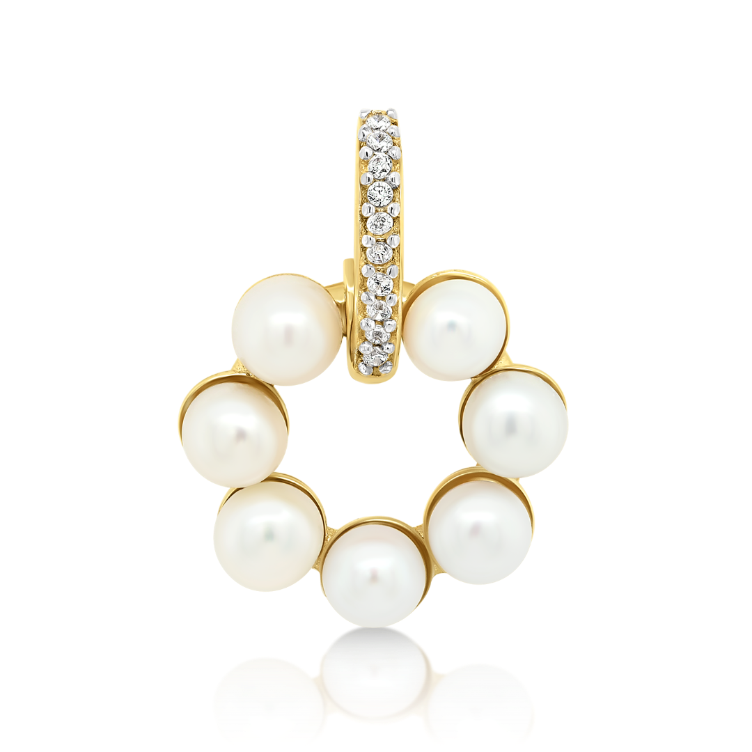 Pandantiv din aur galben de 14K, cu Perle de cultură și pietre Cubic Zirconia.