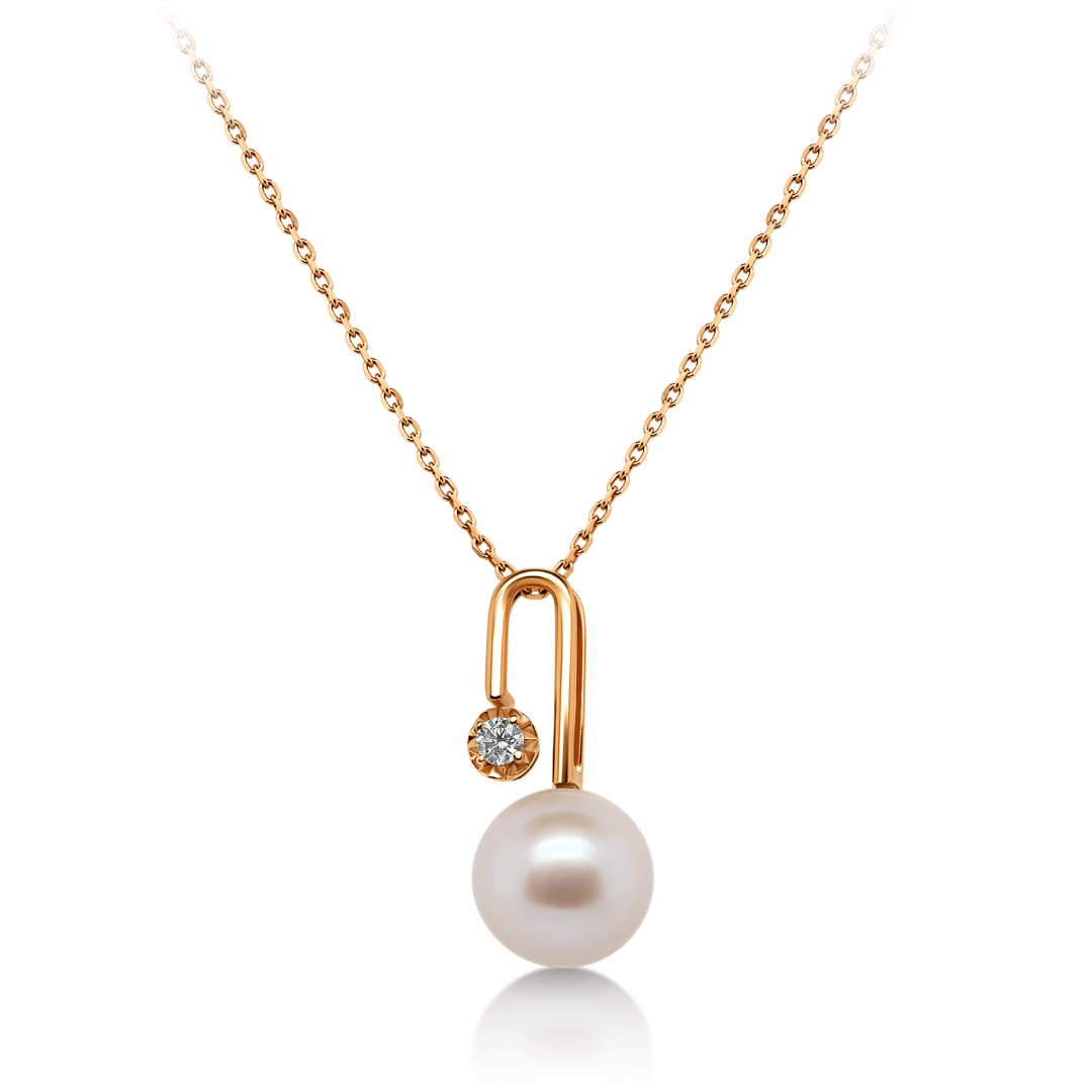 Pandantiv din aur roz de 18K, cu Diamant natural și Perlă