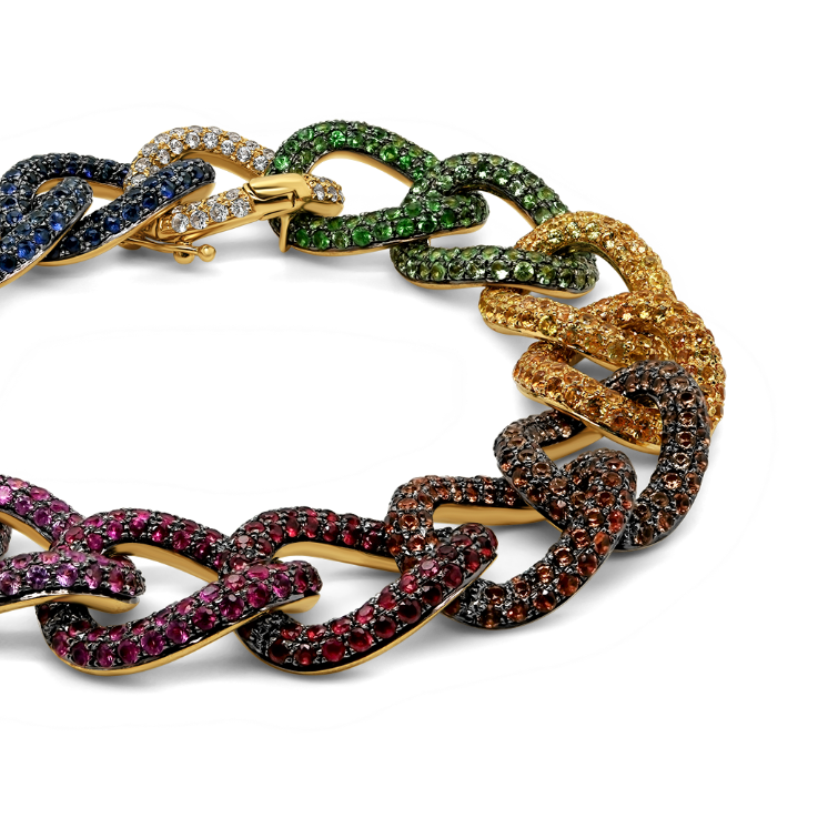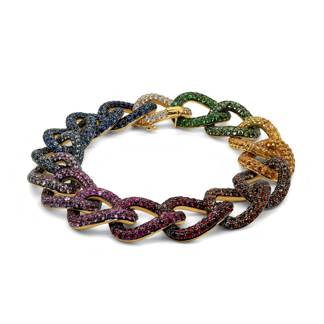 Brățară din aur galben de 18K, încrustată cu 1170 de Safire Fancy cu o greutate totală de 15.61ct.