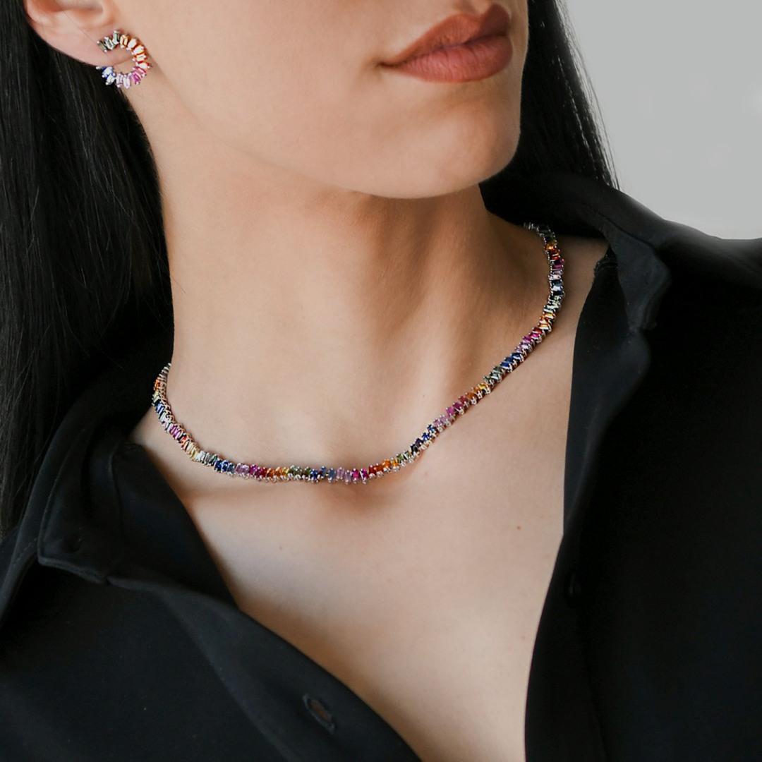 Cercei din aur alb de 18K cu 30 de Safire Fancy de 3.71ct.